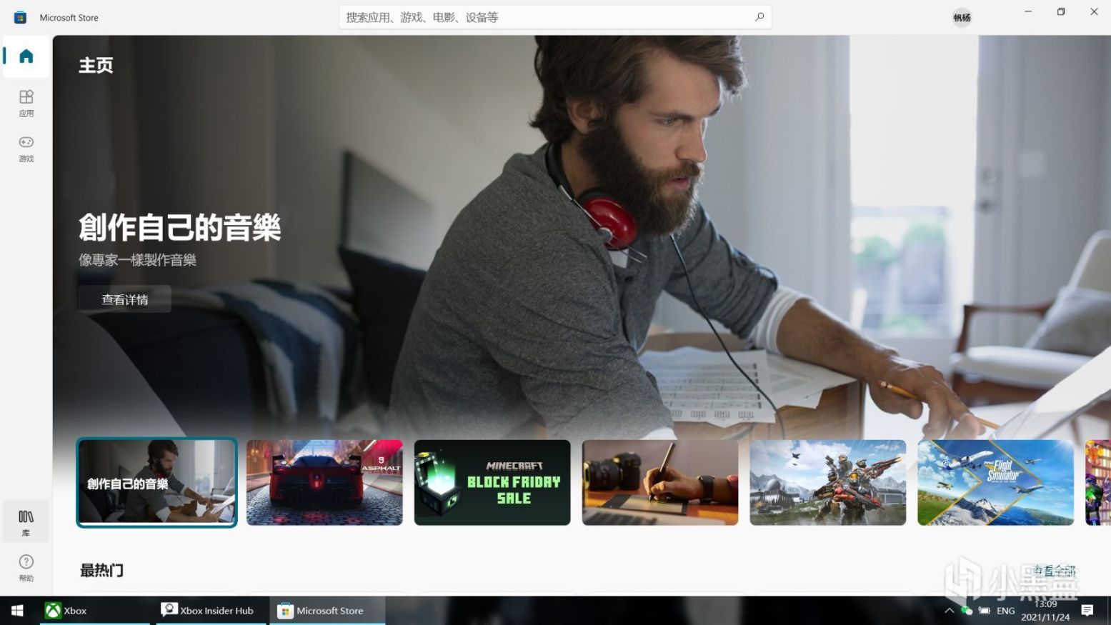 1.在微软商店下载xbox insider hub(点击头像左2图标)