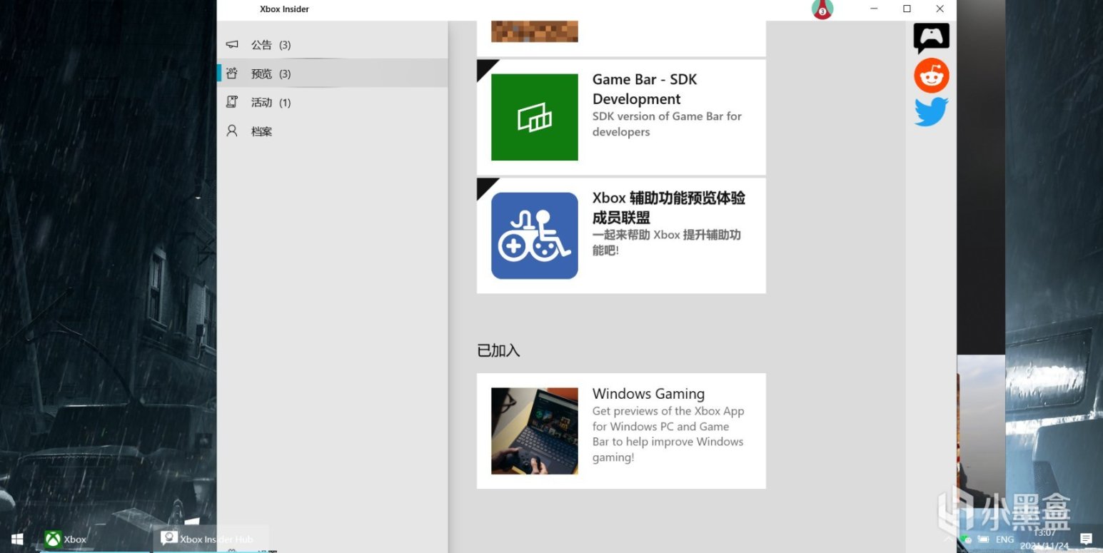 2.正常安装inseider hub,进入,看到预览,点击加入windows gaming(我这里已经加入过了)