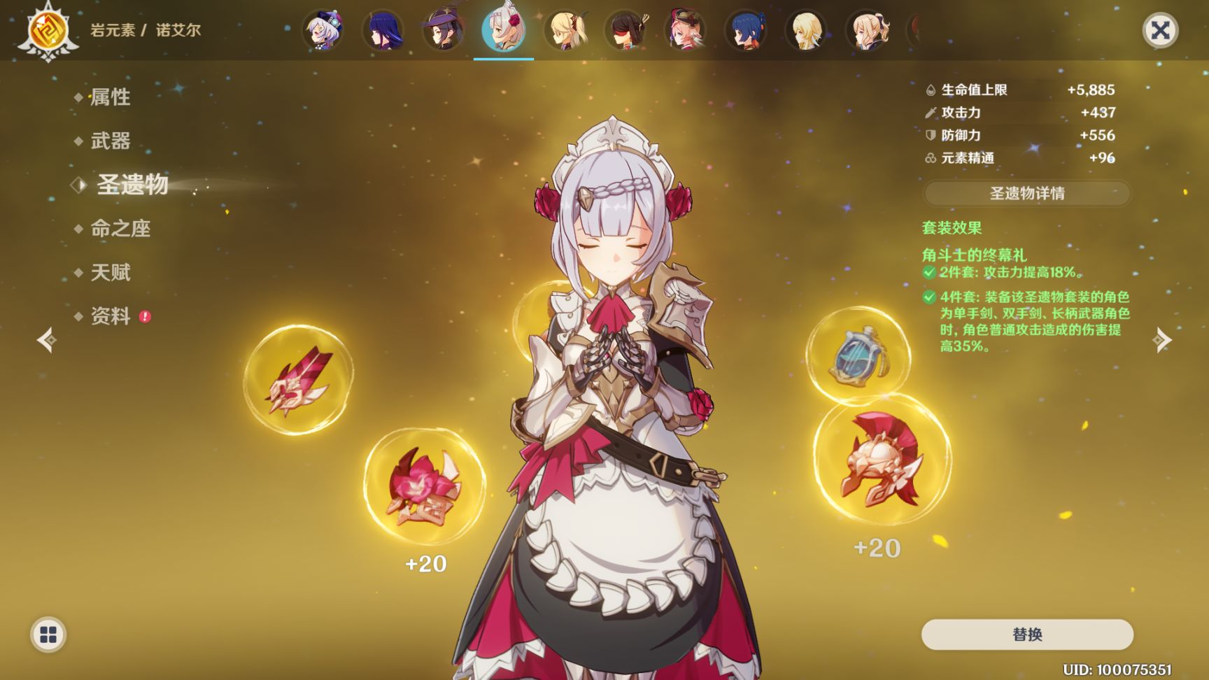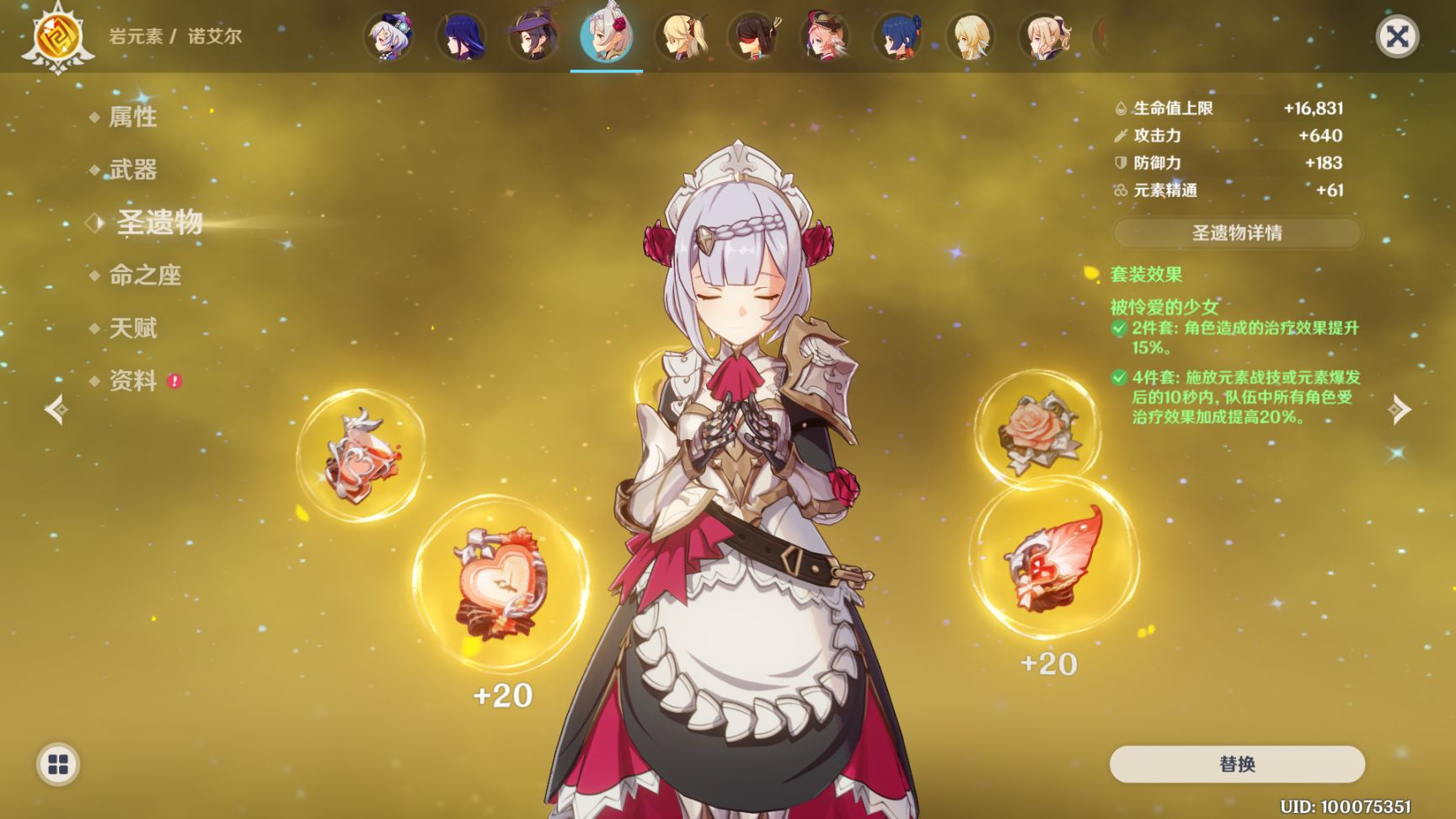 主词条:暴击爆伤头 防御沙漏 岩伤杯子(若没有可选防御杯子)