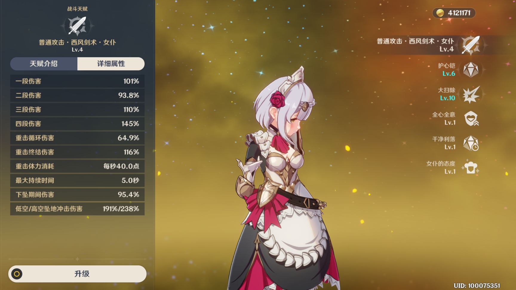 女仆普攻只有四段,且第四段结束后后摇太长,推荐每a四下就闪避开e取消后摇。