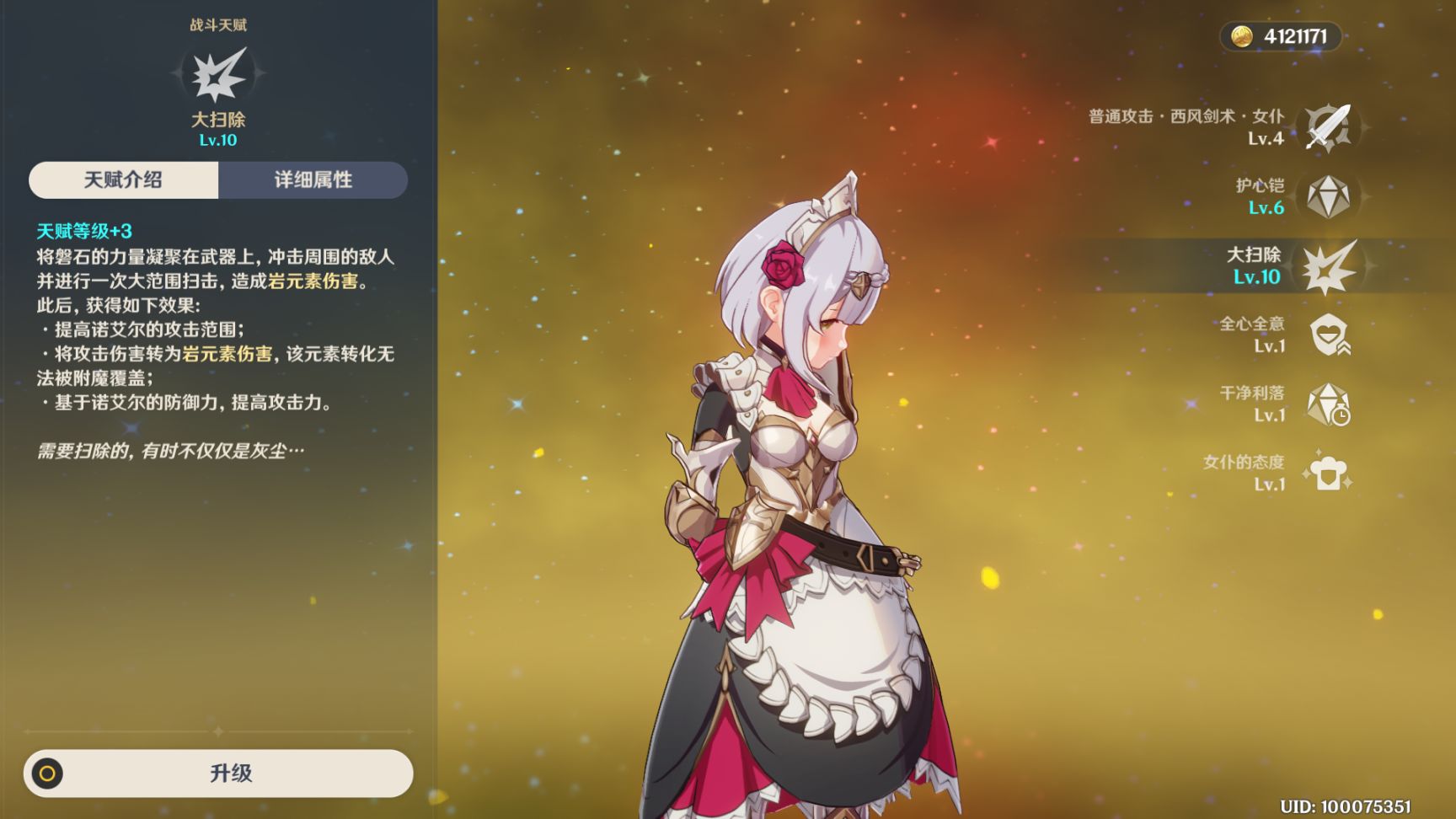 ①奶盾流:主e,其他可以不点(这我自己的号,女仆没怎么练,都是玩别人的)