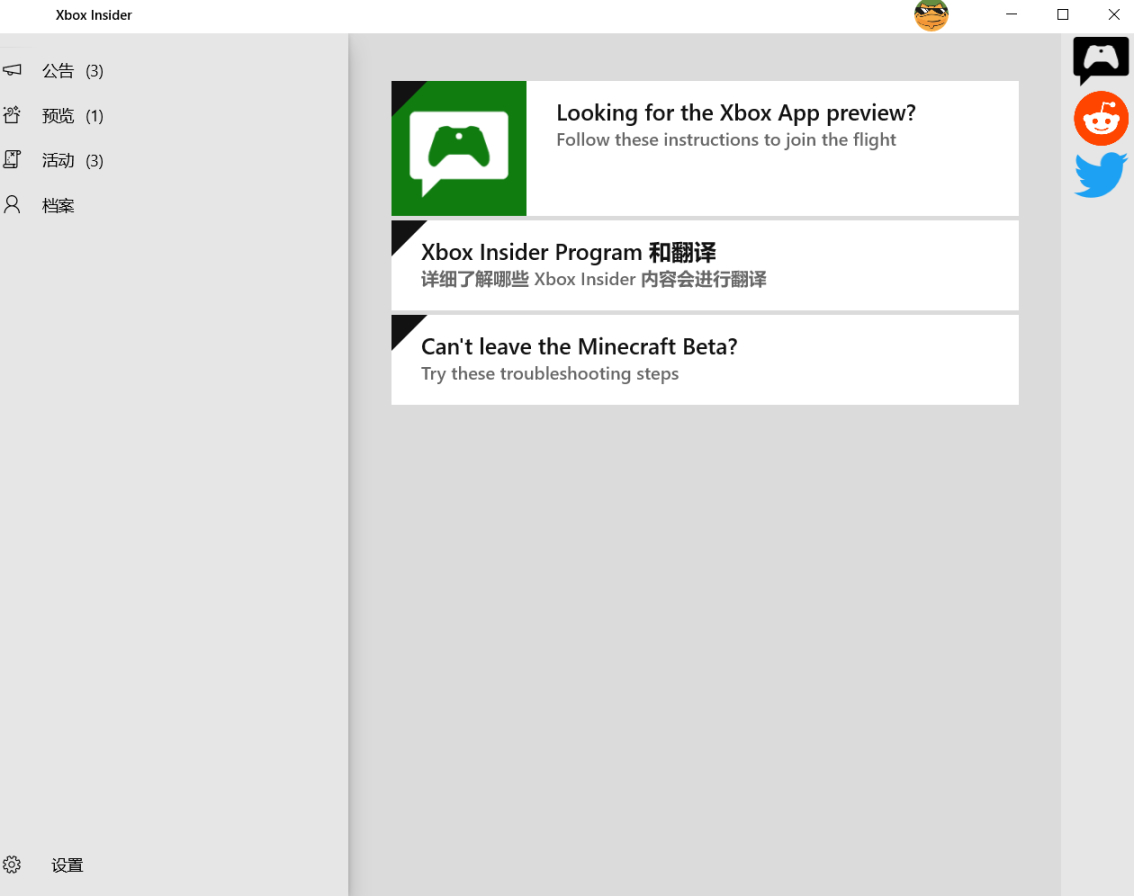 1.首先进入pc端的xbox应用,点击头像左边第二个按钮xbox insider progam。