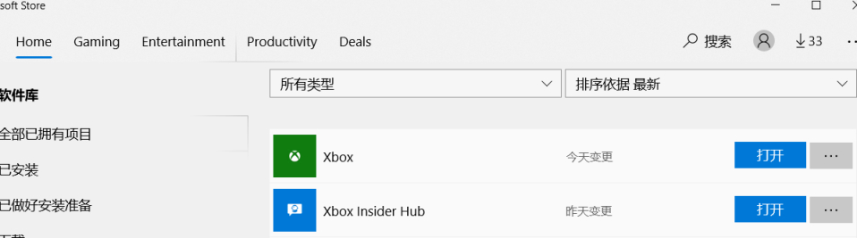 4,回到微软商店看看有没有自动更新xbox应用和游戏服务。(如果没更新可能有延迟,等等)