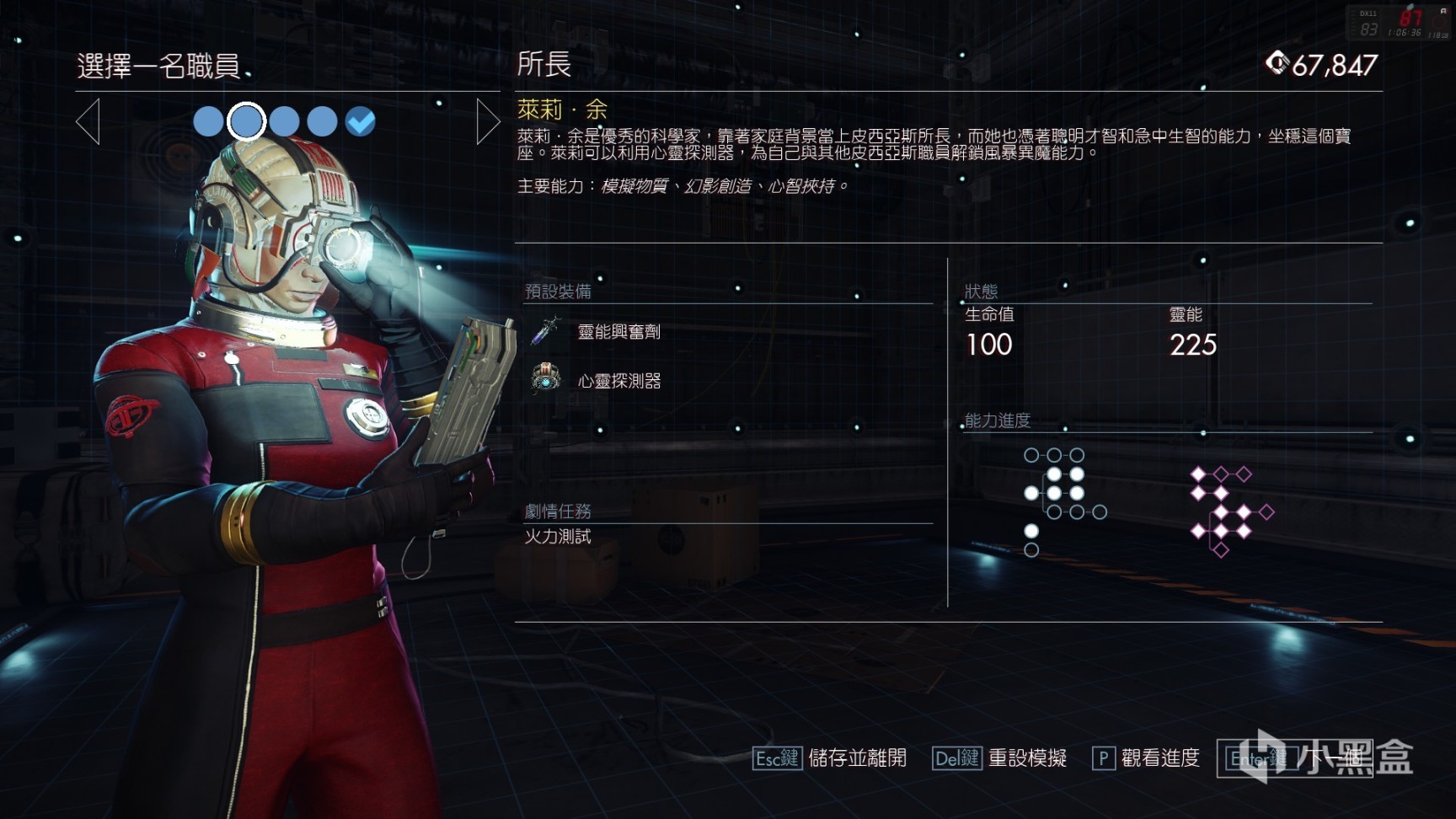 所长是游戏中最像原版摩根的角色,普通能力和灵能系能力都有所涉猎,并且还拥有月球基地的最高权限,能去到一些限制区域。