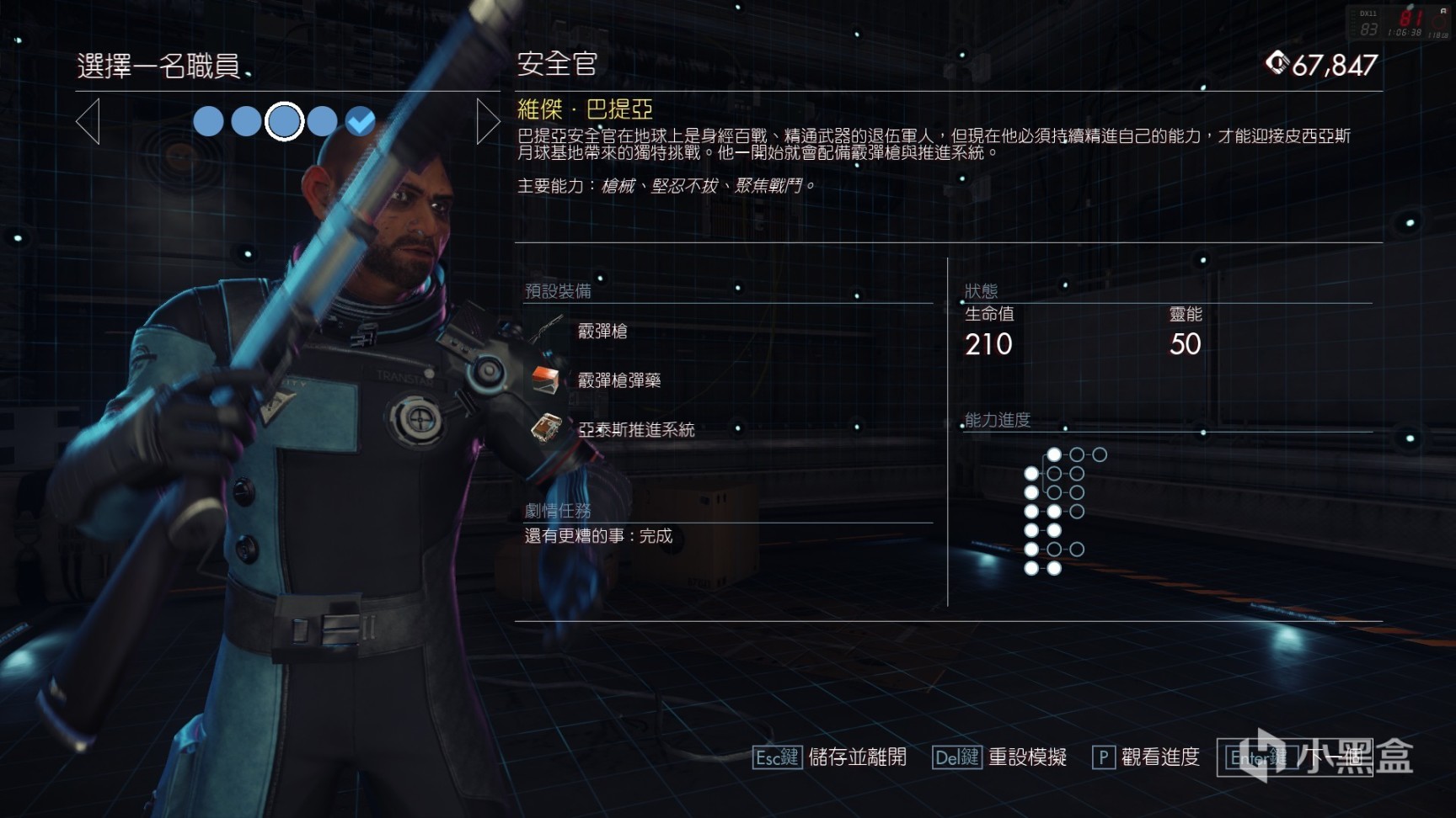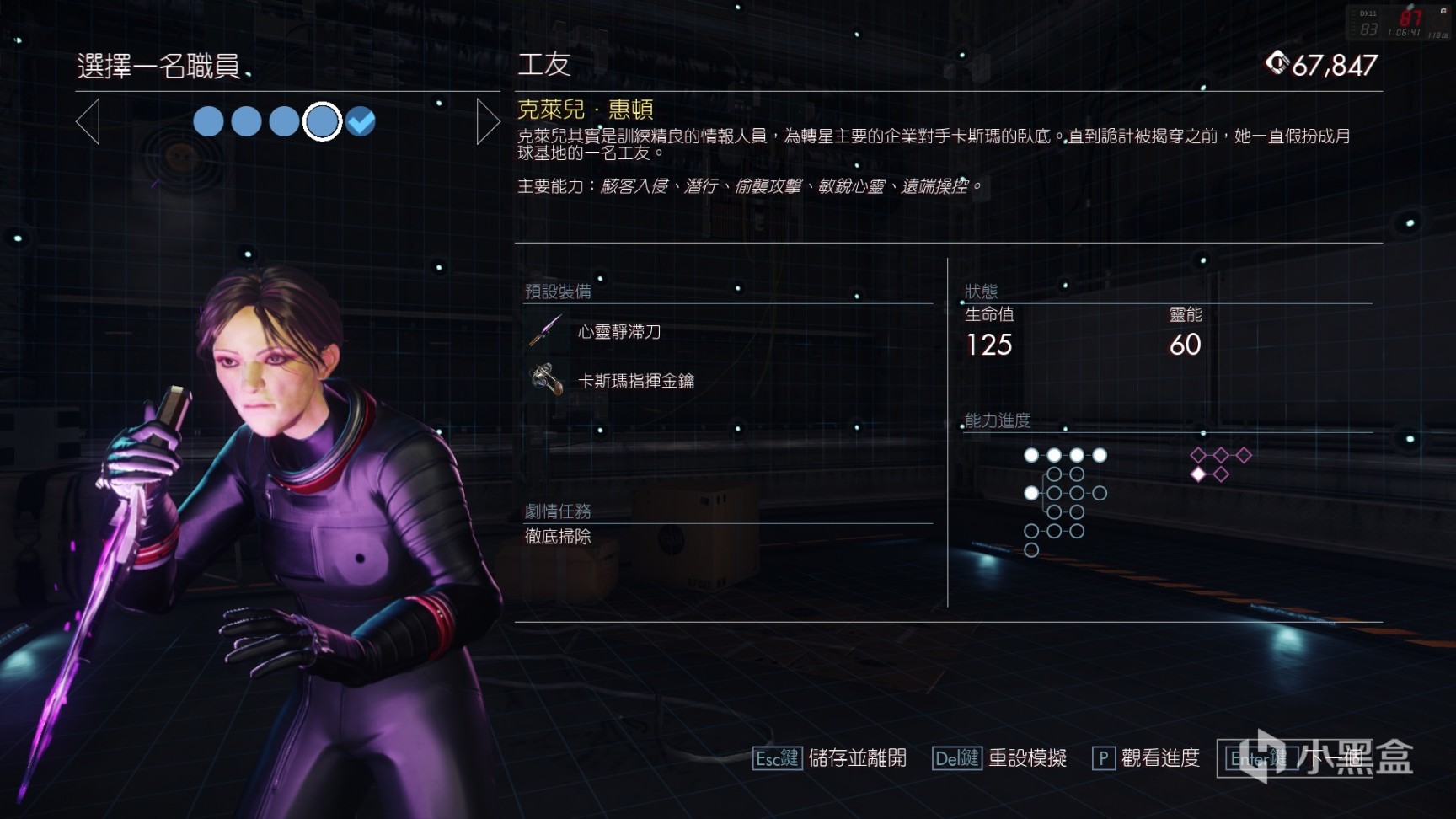 在原版掠食中,主角摩根的能力非常全面,十八般武艺样样精通,而在月崩中,Arkane将摩根的能力拆散重组,形成了5位个性鲜明能力迥异的角色。这种设计一方面可以让玩家更加全面地体验游戏中的能力,另一方面也限制了单次流程玩家能做的事情,这也是本作的核心体验之一,我会在之后详谈。