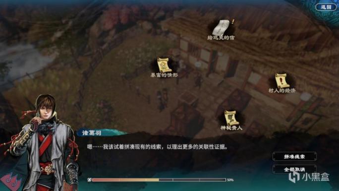 私以为,填充游戏内容是相当重要的,但却很难做好。诸如古剑奇谭三、仙剑奇侠传七等,地图的美工固然很好,但过于空旷。许多美轮美奂的场景仅仅是充当搭建剧情演出的舞台,没有太多的功能性作用,地图点缀着零星任务,因此主线剧情的质量是古剑等一众游戏必须要保证硬性标准。如果一味追求填充大量的内容,也不见得能丰富玩家的体验。如何兼顾质与量,天命奇御二给出了不错的答卷。坦率地说,天命奇御二的玩法机制并不新奇,只是许多玩法的组合。本作既有对前作机制的简化,也有新机制的引入,乍一看好像是变复杂了,但其实轻松易上手,而且难得的是保留了前作的战斗模式框架,战斗深度亦有可挖掘之处。游戏既有八卦、装备、心法、武学等战斗系统,又有推理、思考等解谜系统,前者是对天命奇御一的推陈出新,而后者则主要是来自其他游戏的灵感,例如逆转裁判。本作解谜的内容占比较多,不时要求玩家推理破案,颇有名侦探柯南小剧场的既视感,这缓和了过多战斗可能带来的乏味感,对玩家的技术和智力都有着一定的考验。