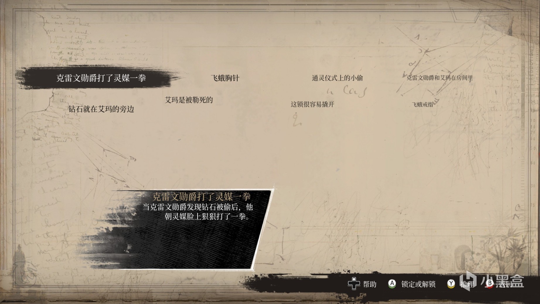 最终对于案件过程演绎和证据内容的相关推导构成了“思维殿堂”的内容,这部分的内容可以视作是对于案情前因后果的一个推断过程,当然在这个过程中有很多环节是存疑的,存在多种可能的解释,那么就需要我们从中选取一个自己觉得最合理的,这也就导向了本作探案部分最大的特色:开放式结局。