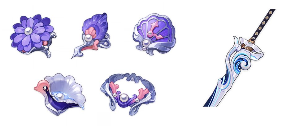 2.3 版本推出的新圣遗物「海染砗磲」包括之前推出的一系列海祇主题道具都或多或少地对海祇岛神殉时代的事话与牺牲进行了描述,这些歌颂神君、讲述巫女和藩王事迹的故事无一不饱含着深深的唯美柔情,但同时也始终带有一种对于宿命结局的感伤。