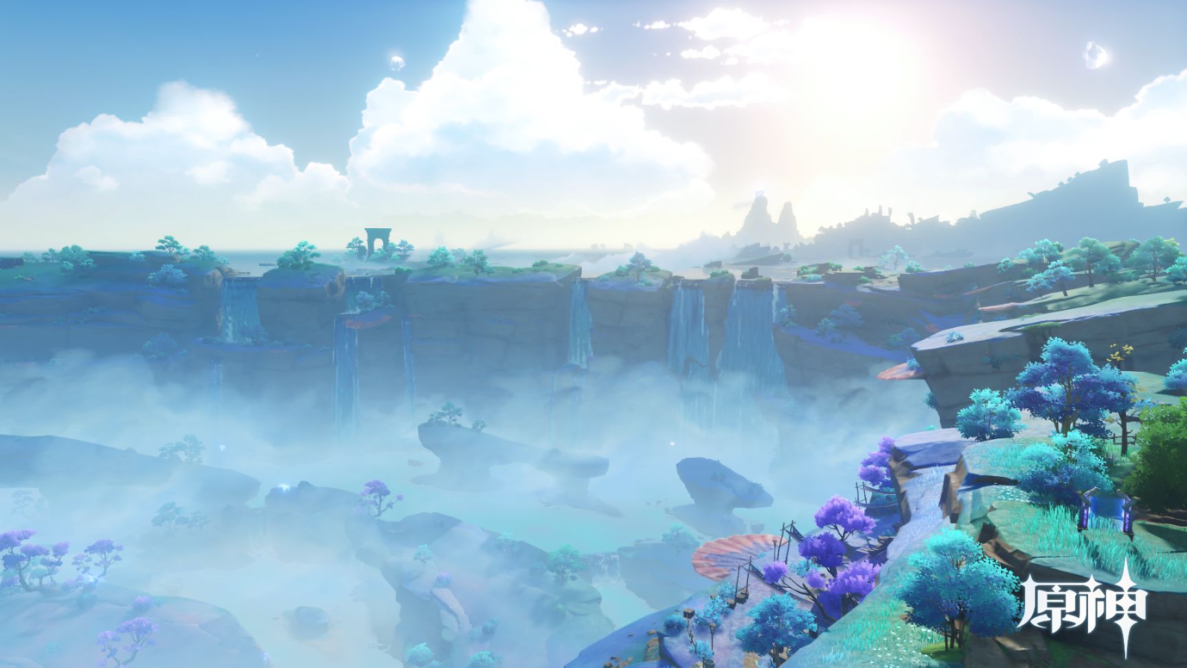 位于海祇岛西部高崖之上的神社「曚云神社」正是以曚云巫女之名命名,这里原先曾是海祇人崇拜大御神的信仰中心,然而随着东征失败神明陨落,失去巫女的神社遭到破坏成为废墟。在海祇人得到雷神应许保留大蛇信仰后,崇拜大御神的中心才迁移到了如今的珊瑚宫处