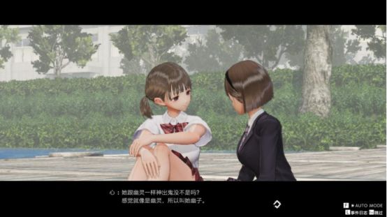 除了战斗部分外,游戏中还有一个非常有意思的潜行玩法,潜行玩法主要是在进行一些“隐秘任务”时体现的,进行“隐秘任务”时,玩家无法挥动武器,主要目标就是不被敌人发现,顺利到达目的地,一旦被敌人发现就会强制返回原点。(另外说到这里,在战斗部分玩家如果被团灭了,会自动返回学校的保健室,也就是游戏中的重生点,不过战斗过程中是可以逃跑的,实在打不过跑就完事了)玩家可以利用侦测模式,来看到敌人的搜索范围,只要避开搜索范围,就不会被发现,不过在侦测模式中无法快跑。此外,在平常战斗时,也可善加利用侦测模式,避开与敌人正面交锋,绕到敌人身后发动袭击,在战斗中占据先机。