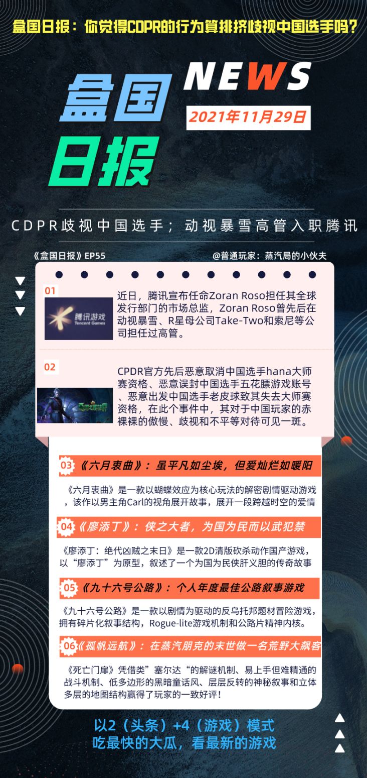 盒报茶话间:B站一个题为“我双标、诬陷、种族歧视、画大饼,但我做出了巫师3,我是好公司”彻底将“CDPR昆特牌事件”引爆(下文有详细报道),那么你觉得CDPR这一系列行为算歧视排挤中国选手吗?(文末有投票)