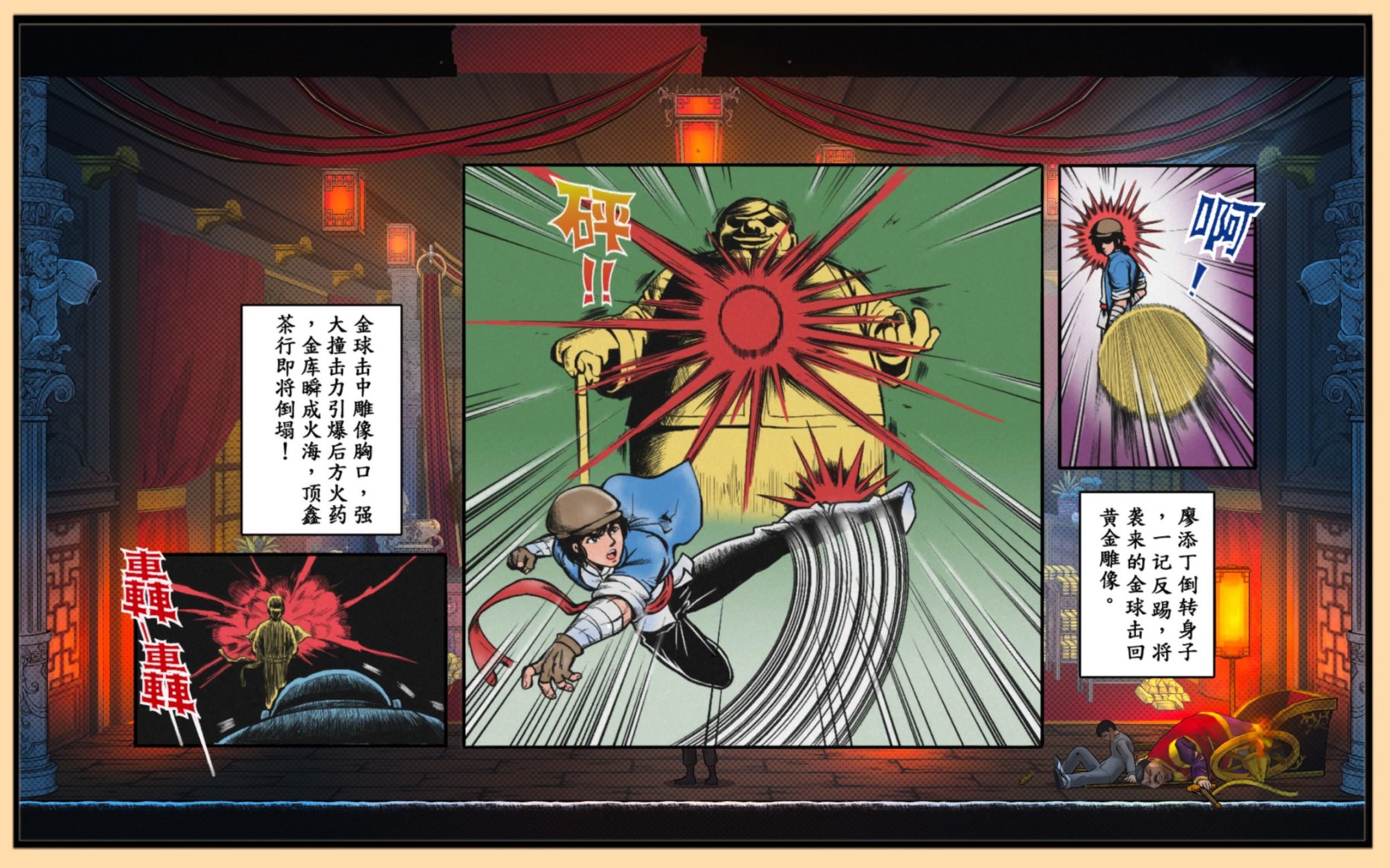 - 本作以浓墨重彩的彩色港漫画风为主要美术风格,用漫画分镜的表现形式来展现剧情CG,吸引 着玩家眼球,给予玩家一场另类的视觉体验。