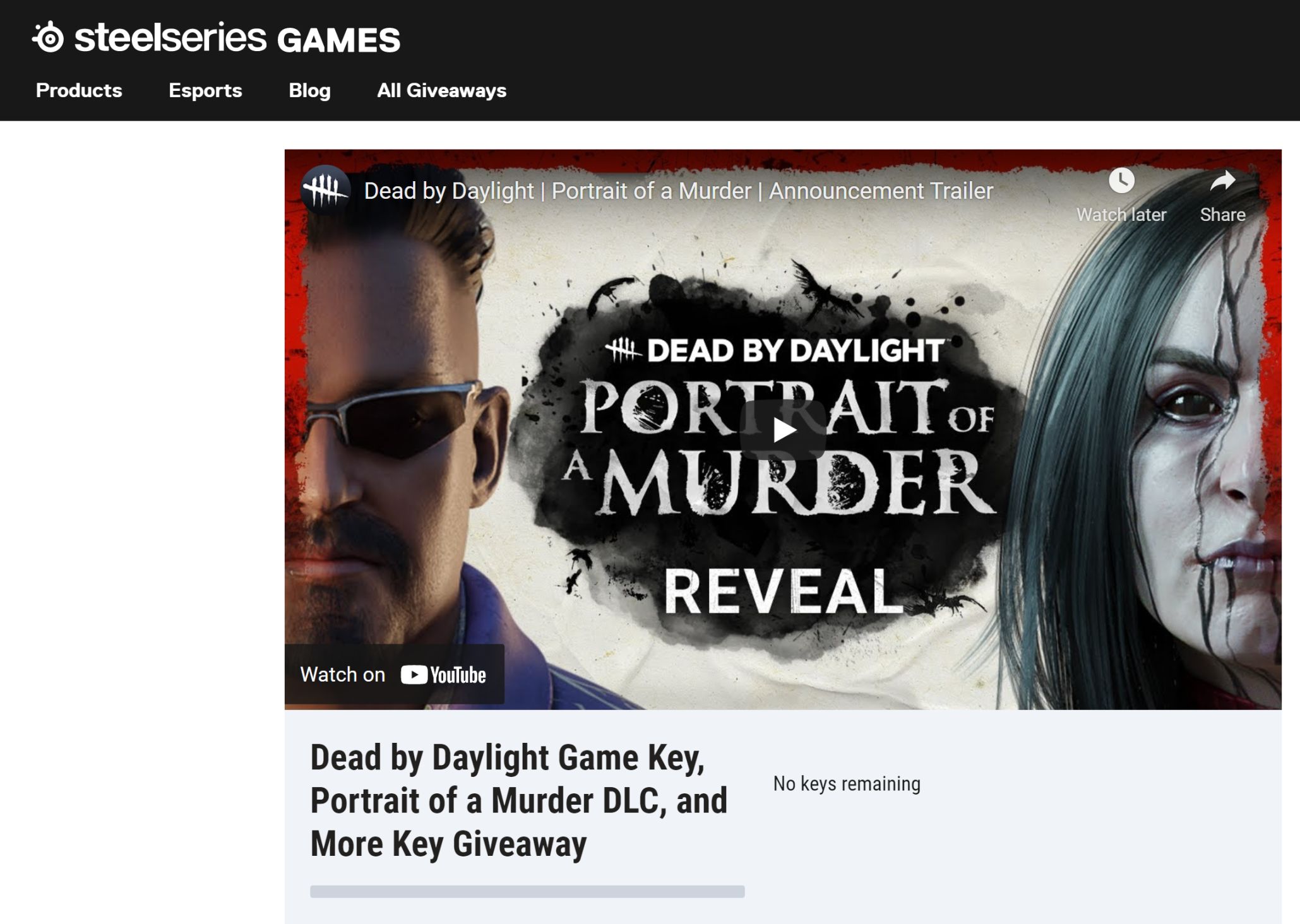 领取链接:https://games.steelseries.com/giveaway/682071112/dead-by-daylight-game-key-portrait-of-a-murder-dlc-and-more-key-giveaway