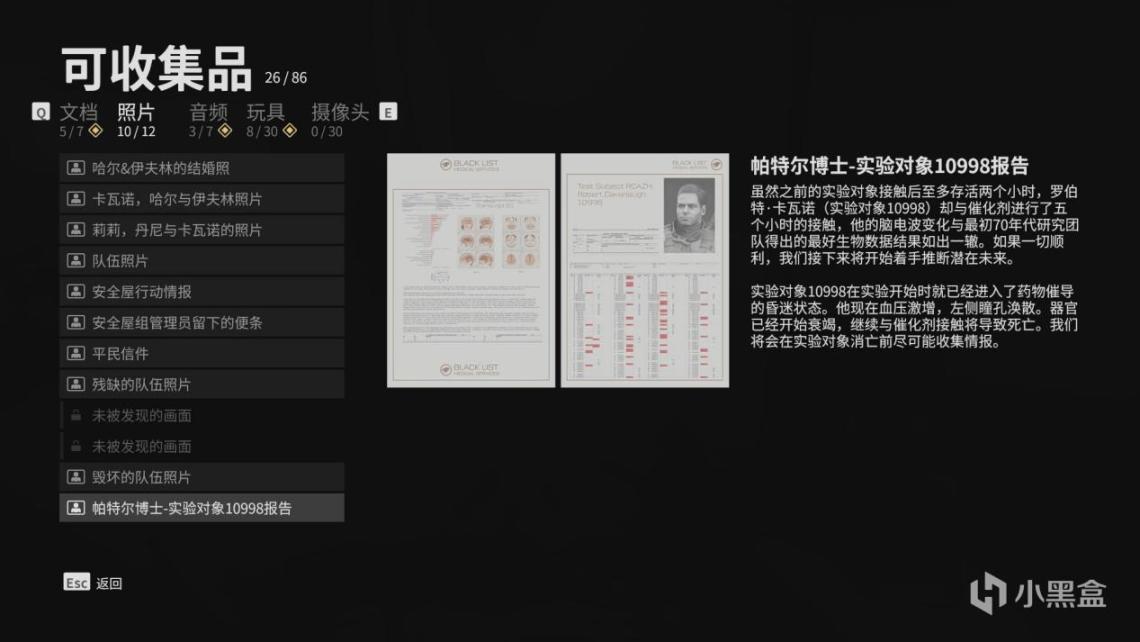 文档、图片和音频主要起到的是补充世界观和背景的作用,玩具则仅有纯粹的收藏功能。至于摄像头,说来惭愧,我直到打完才知道有这个栏目。具体功能暂不清楚,等我马上找一个试试看。