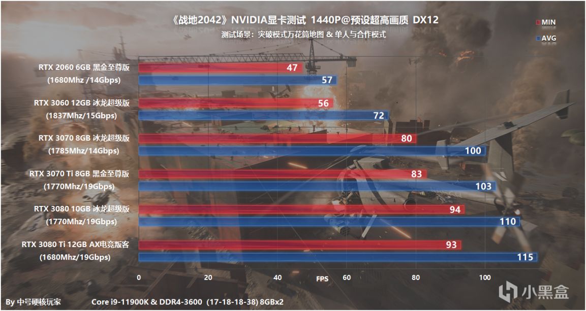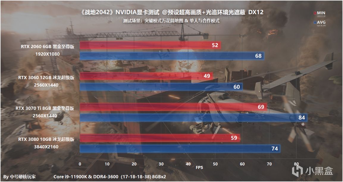 在《战地2042》中,推荐RTX 3060 12GB冰龙超级版,2K分辨率无论是开启光追还是最高画质,平均帧率均能达到70fps以上,游戏中温度控制在60℃出头,标称Boost频率为1837Mhz,实际会比公版会高一点。