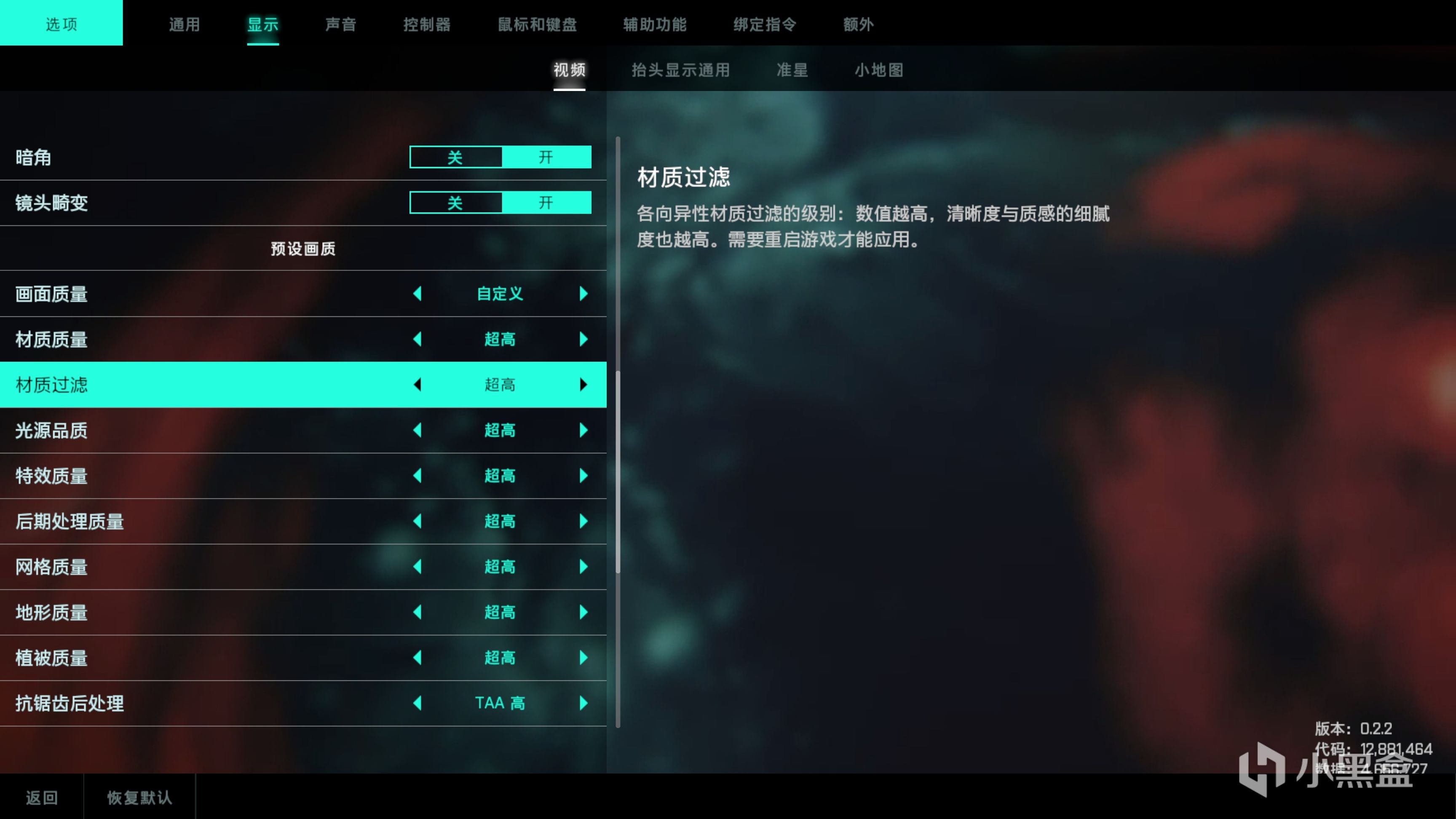 图形设置选项,界面设计就是按照近未来的风格,选项来说其实和《战地5》是基本上一致的,也是分为预设低、中、高、超高四种画质方案,只是说《战地2042》画面略微有一点升级,但说实话这么强大的寒霜引擎,本作的破坏性却远远不如从前,未来框架渲染也是游戏引擎特性之一,开启可以增强性能,但会增加延迟,测试当然也是开启。