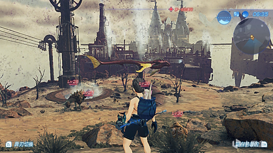 以上说的基本都是优点吧,虽然说地图设计的很绝,但游戏的地图引导才是真的离谱,生怕你不会迷路。不知道有多少想入坑异度2的玩家倒在了前往古拉城镇的路上,罗盘上那个大大的感叹号就摆在那里,但据我观察,这个罗盘指引的角度与实际的位置是有很大偏差的,如果你面朝东,但目的地在南,罗盘上的叹号并不会离中间偏很多,这就给玩家一种我走的方向大概没错的感觉。然而地图本身就很大,偏差一点走下去那就差了不止一点了。还有这个叹号的上下引导,不能说是完全没有吧,但也绝对不能说它有用。除了这个离谱的罗盘,小地图也是离谱的很。尺度这么大,垂直分布这么复杂,而右上角能看到的只有那一小圈,或者你可以把地图直接糊在自己脸上,不过我感觉并没有多少人愿意这样,因为实在是太别扭了。