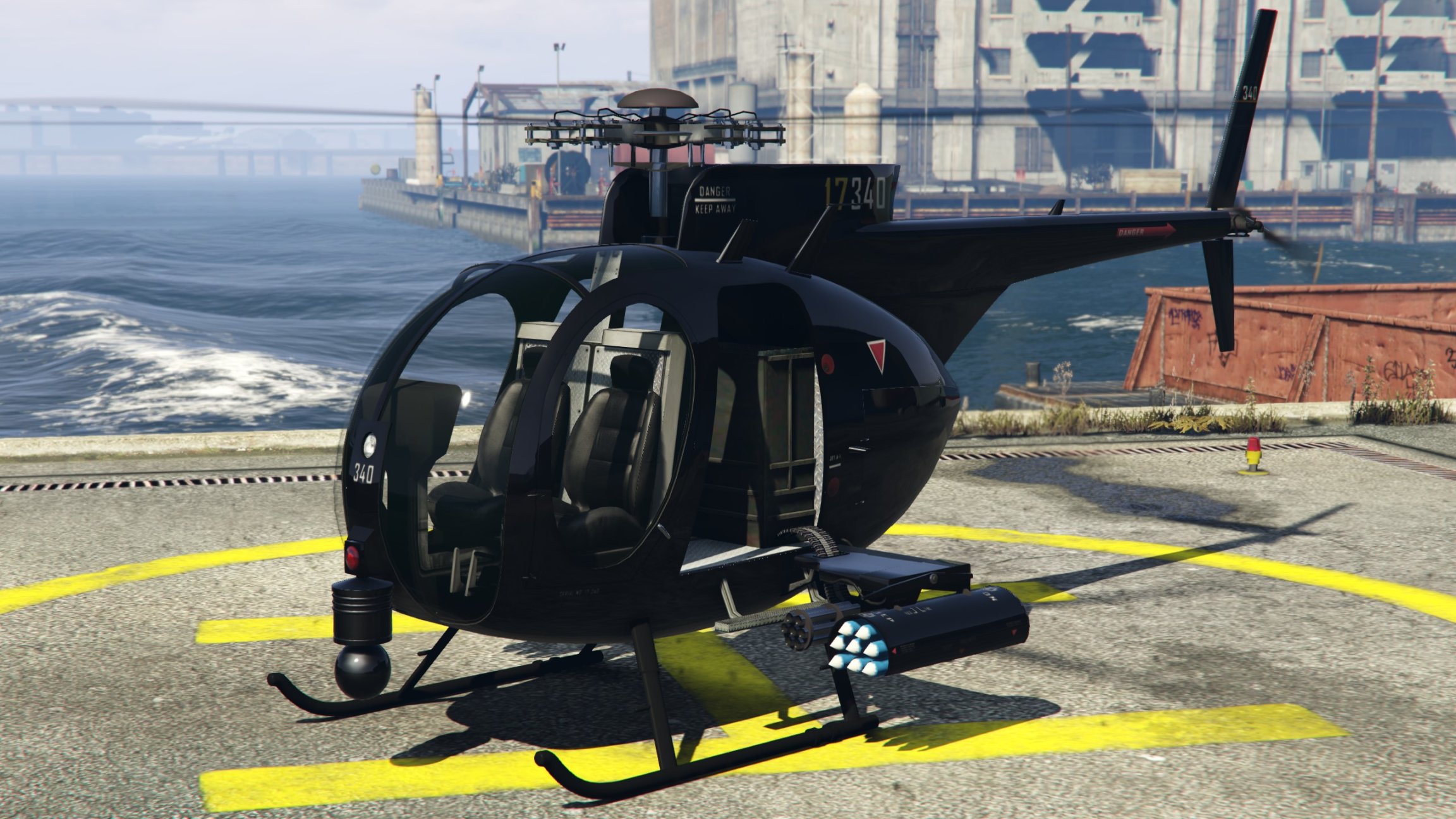 联邦调查局所使用的武装直升机,它配备有四门火神机枪,可以对目标造成严重伤害。但由于其体型较大因而难以操控,同时也很容易成为地面火力的靶子。