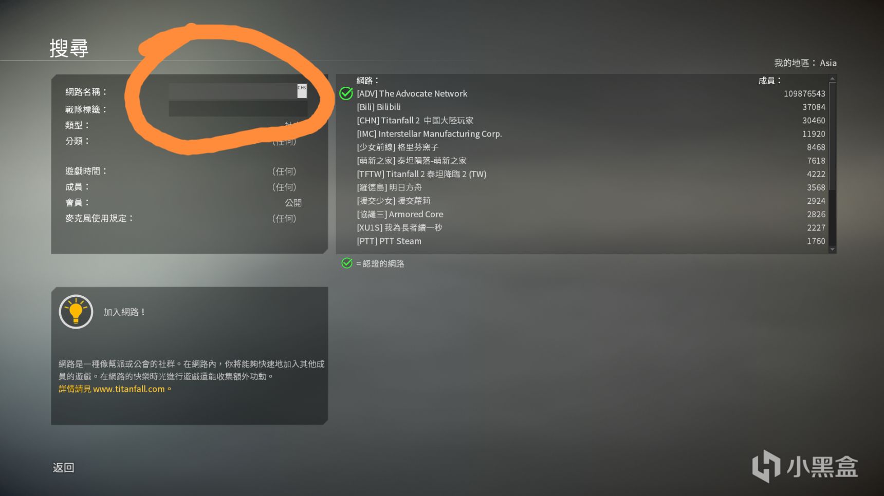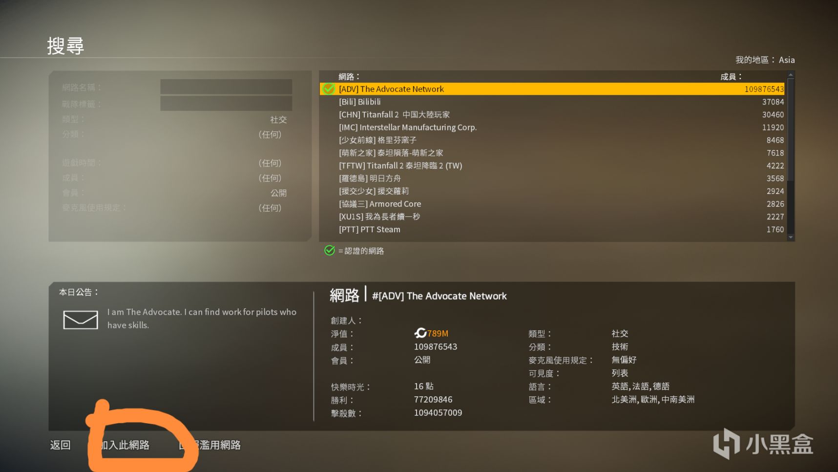 输入你想加入网络(战队)的全称,右侧会弹出该战队。