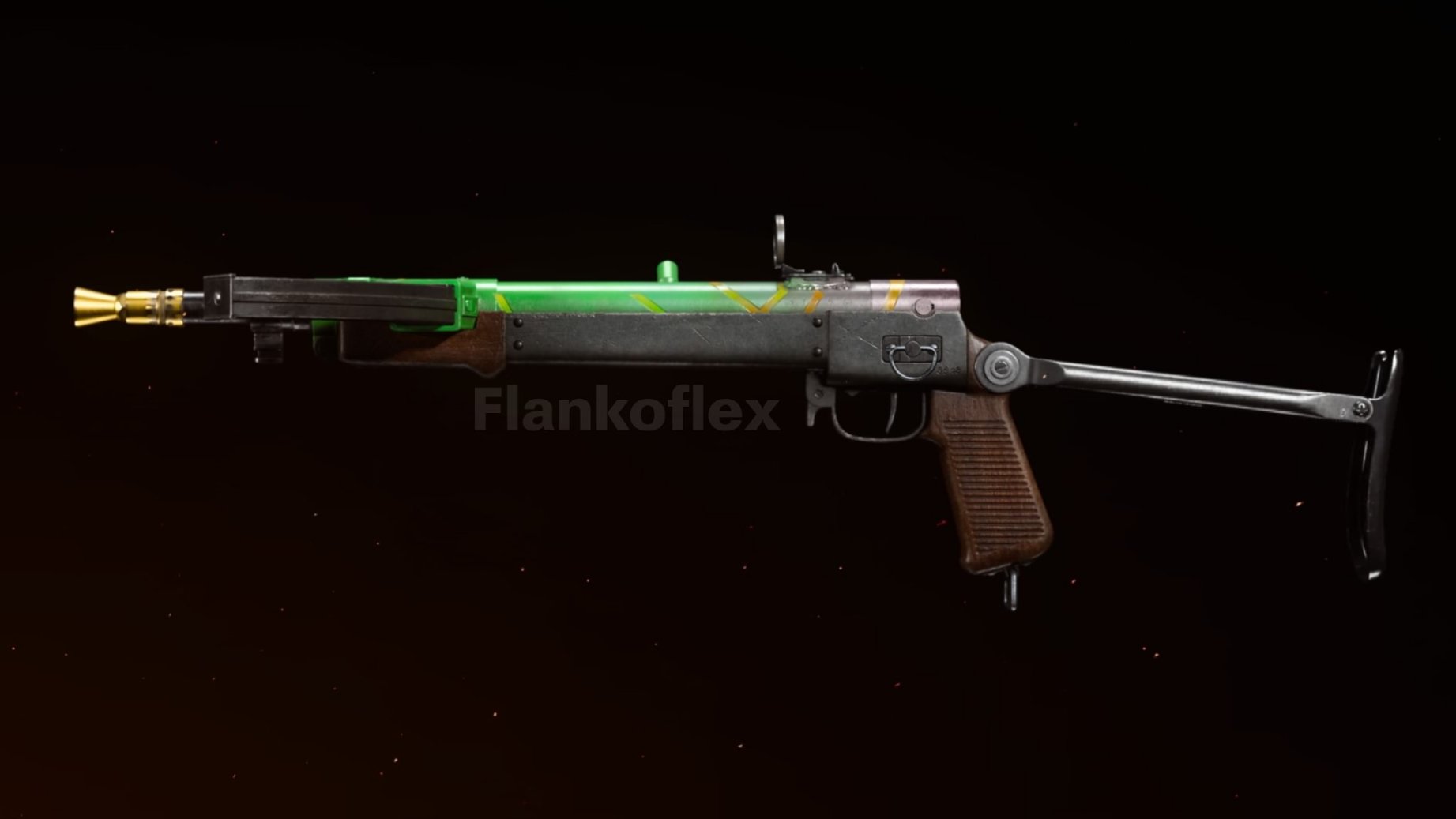 32发弹匣容量,配有折叠枪托,枪管下的木制护手用于稳定。