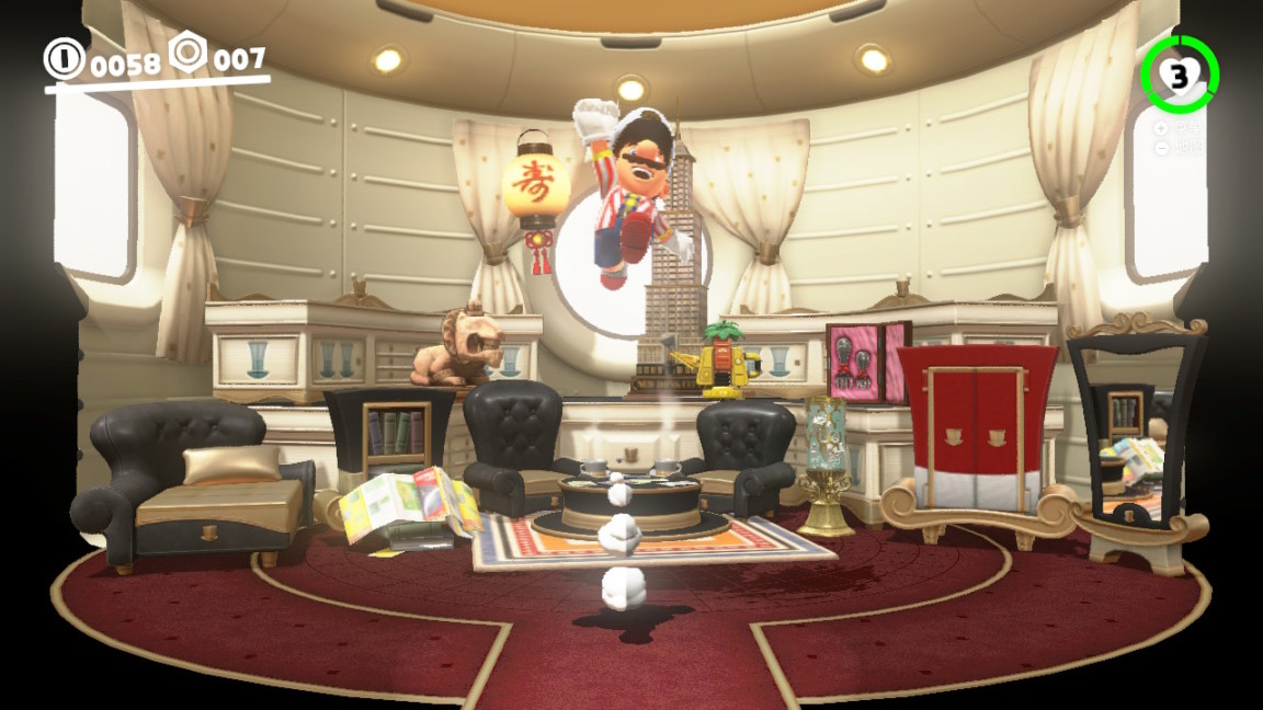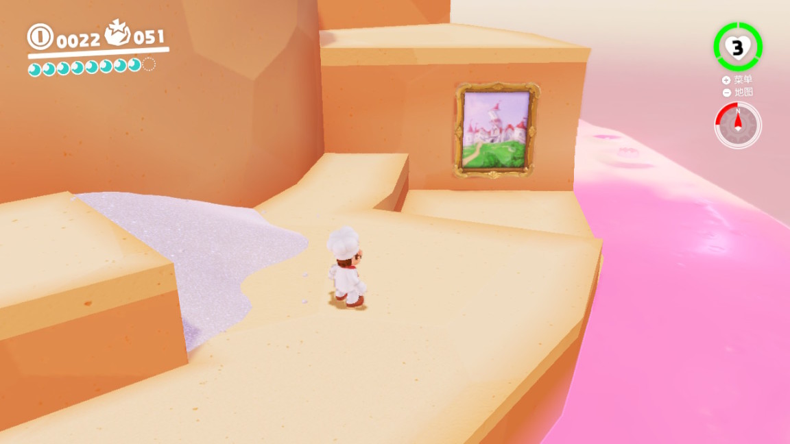 跳入不起眼的一幅画中,居然穿越到了桃花公主的城堡;附身在拉链上,拉开的墙板是可以踏着前进的桥;种下一颗种子,沿着藤蔓攀爬就能回到地面;用帽子击打一圈盛开的花,会跳出爱心作为奖励;在绿色的水管里穿梭,再次出来的时候就到了全新的地点……视角的无缝衔接,和场景完美融合的bgm,奥德赛中有新意的小细节真的太多了,玩的过程中我每时每刻都被老任的诚意惊喜到。