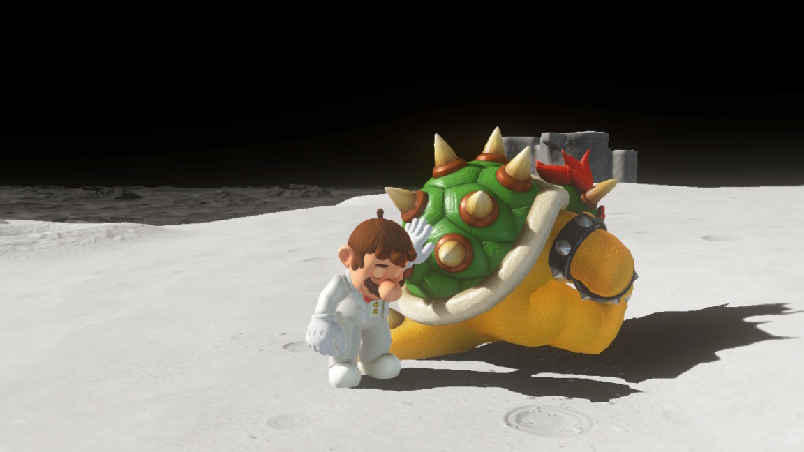 奥德赛的游戏背景非常简单,桃花公主被酷霸王抓走了,因此马里奥大叔踏上了漫漫千里追妻路(然而直到通关我才发现公主不喜欢马里奥…)