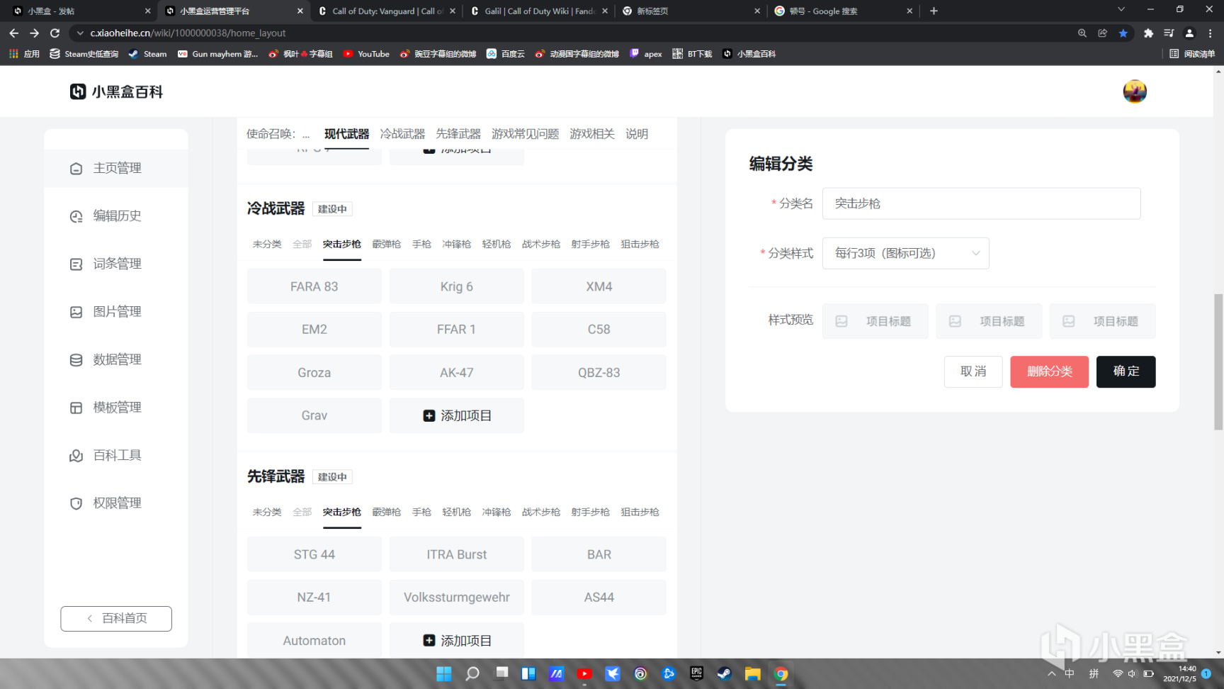 - 创建先锋的所有武器词条,再新增对应的词条去对应的分类