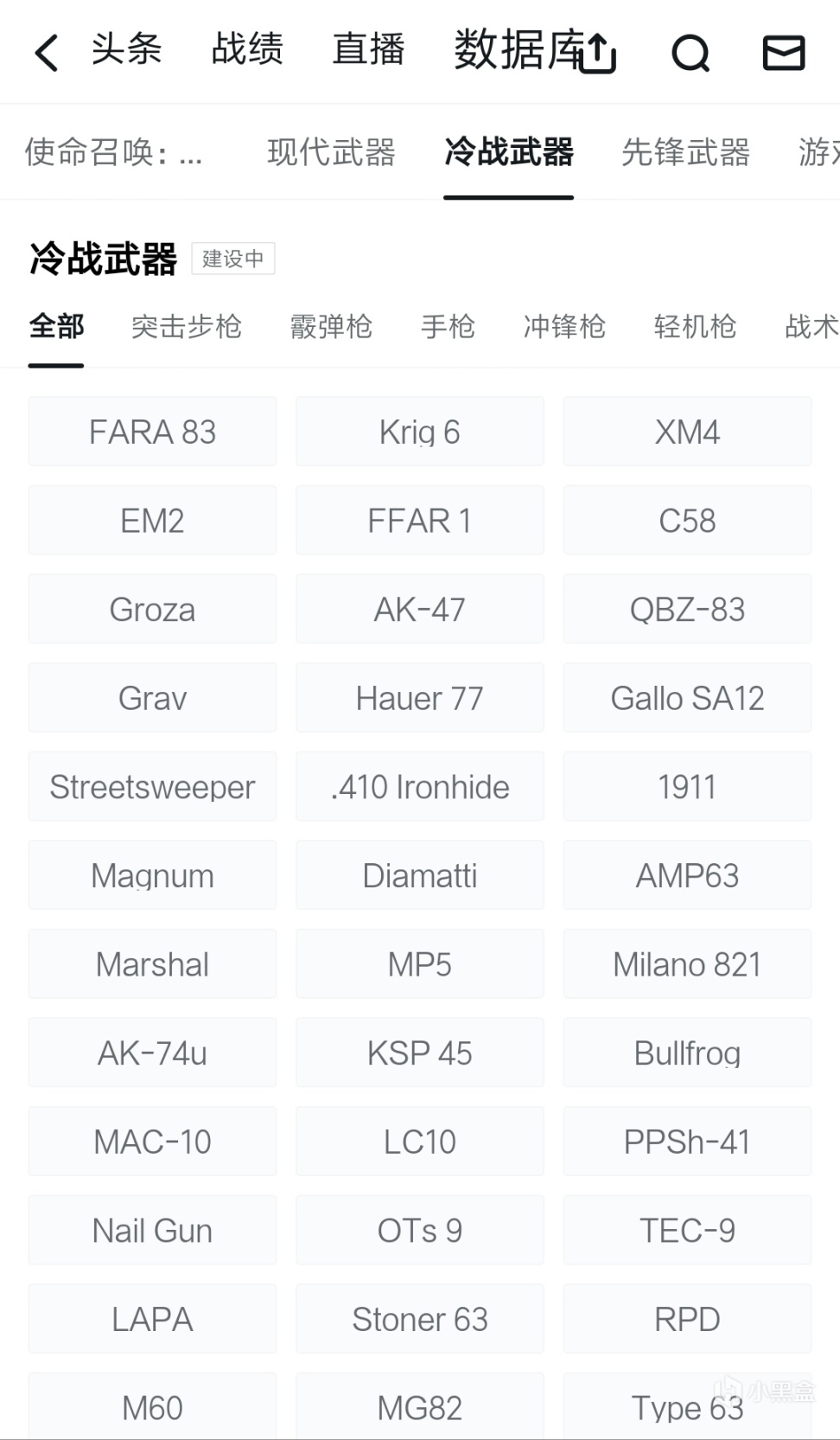 - 为「冷战武器」增加了全部武器的分类,就是突击步枪霰弹枪手枪那些,过后会补个特殊武器的分类