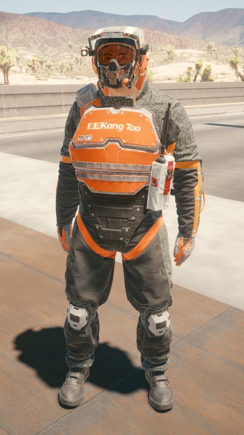 康陶士兵身着灰色迷彩制服,配一件涂成橙色的防弹背心。他们的头盔十分独特,包括了防毒面罩,但缺少了眼部装备。
