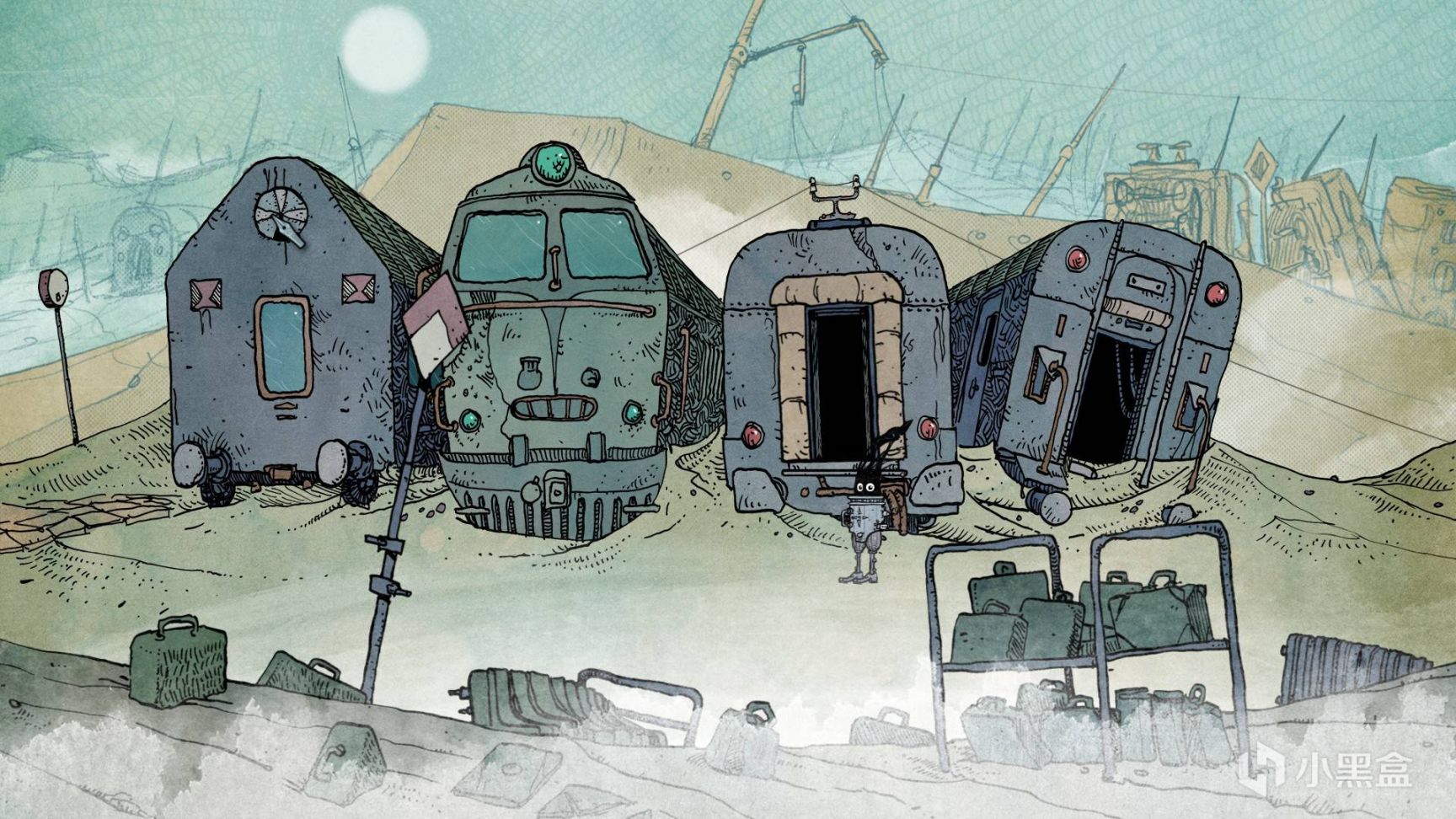 游戏的美术风格是足够惊艳的,游戏的制作人是一位漫画家,游戏的方方面面都是其用笔一笔笔勾勒而出的。十分有个性的画面无疑是这场光怪陆离的旅行最好的诠释,这场平和的旅行也不过是末日后的世界的小插曲。