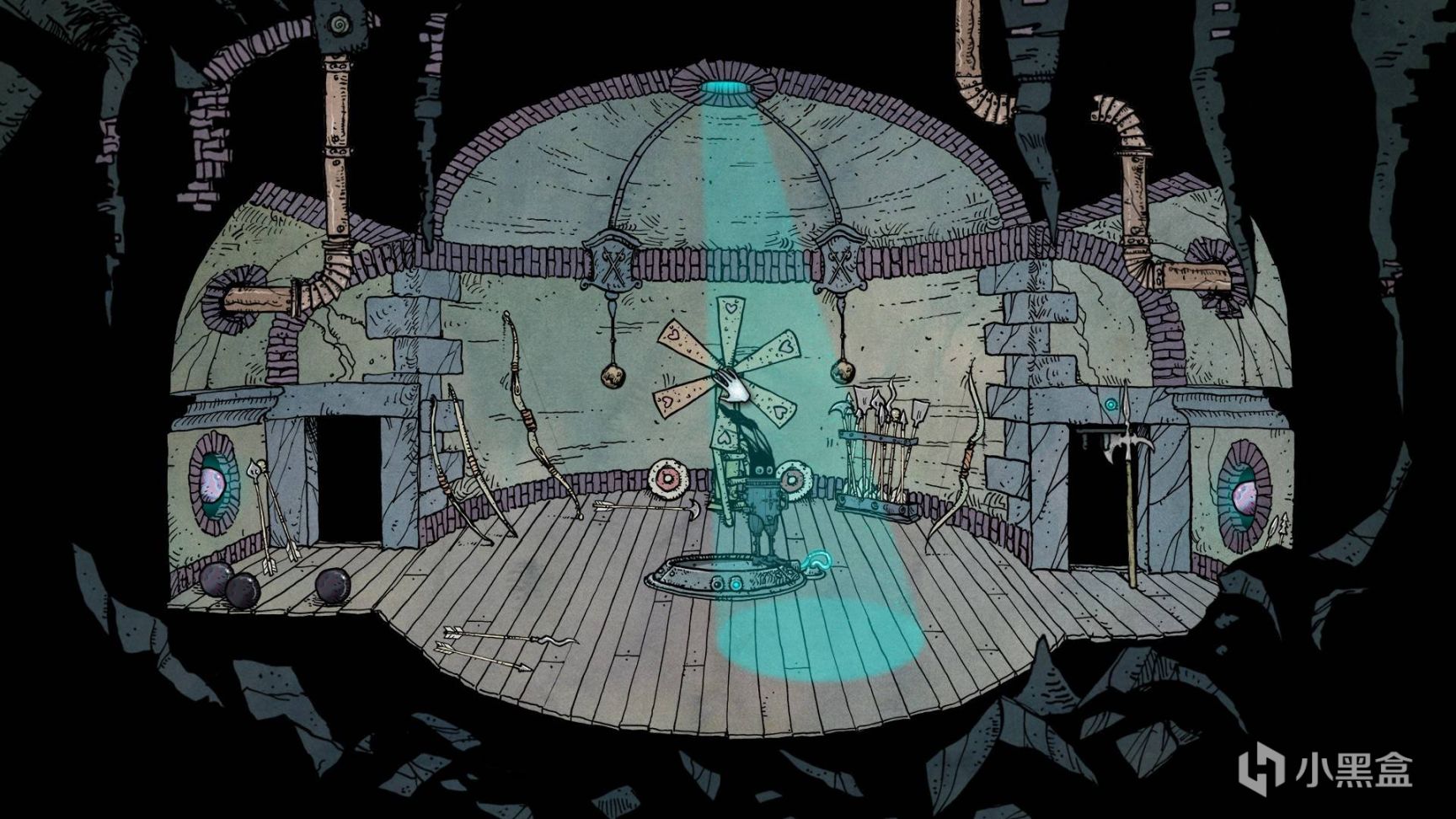 没有什么是一环扣一环的解密更能给玩家带来成就感的了。游戏本身需要细致入微的地方很多,有时候也需要开通玩家的脑洞,并不能用常理来解决。就比如这需要用长戟支撑的铁门,正常人估计会寻找地图上两个可互动铁球与风扇间的关联,但这是游戏作者对于玩家的误导。
