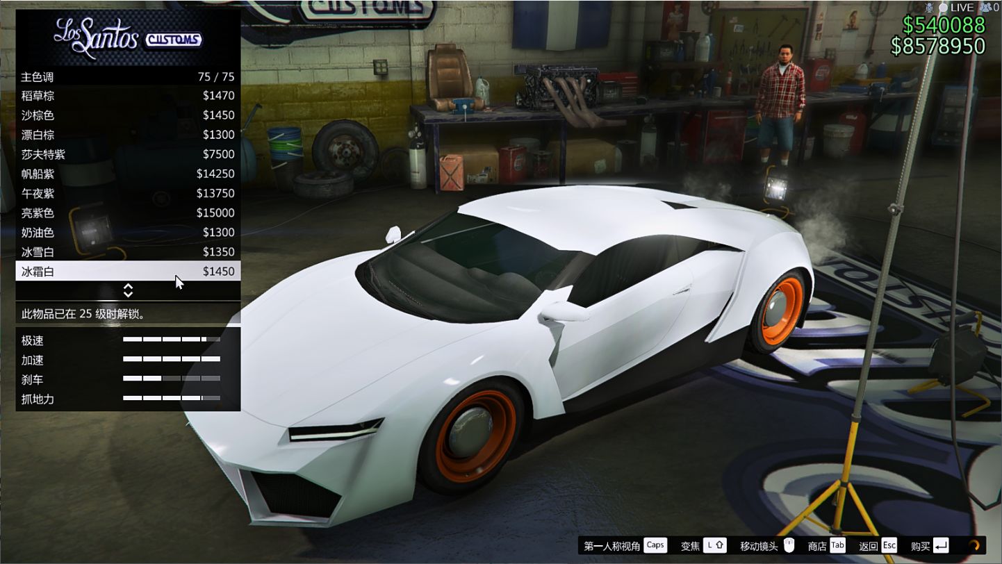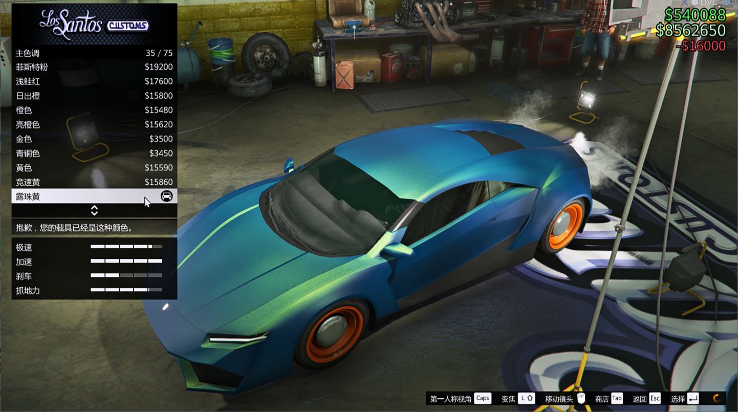 第五步,再去主色调喷漆界面就可以选珠光了,这样就卡成功了