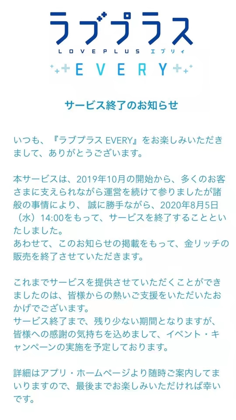 本以为遗憾已成定局,三年后2017年8月25日,沉寂已久的《Love Plus》官推突然宣布LP系列的新作即将发布,新作《LovePlus Every》预计于2017年底登录手机平台。