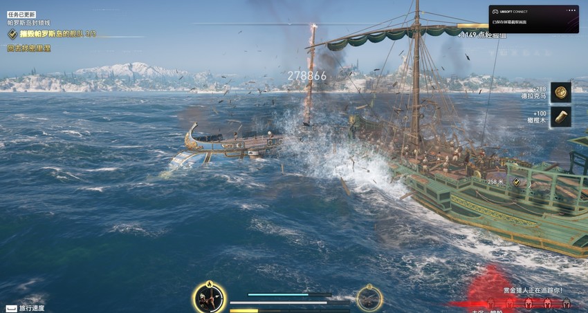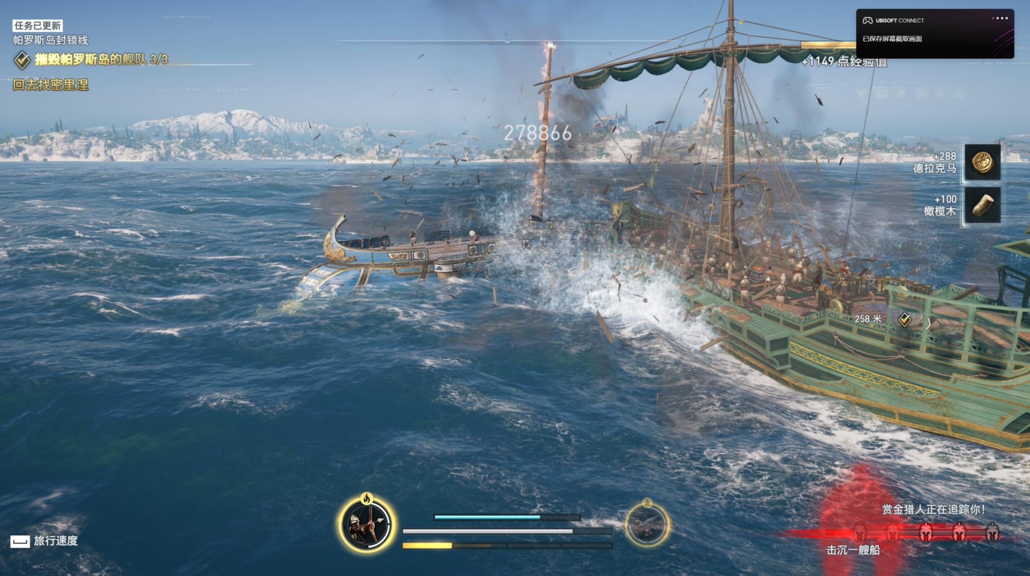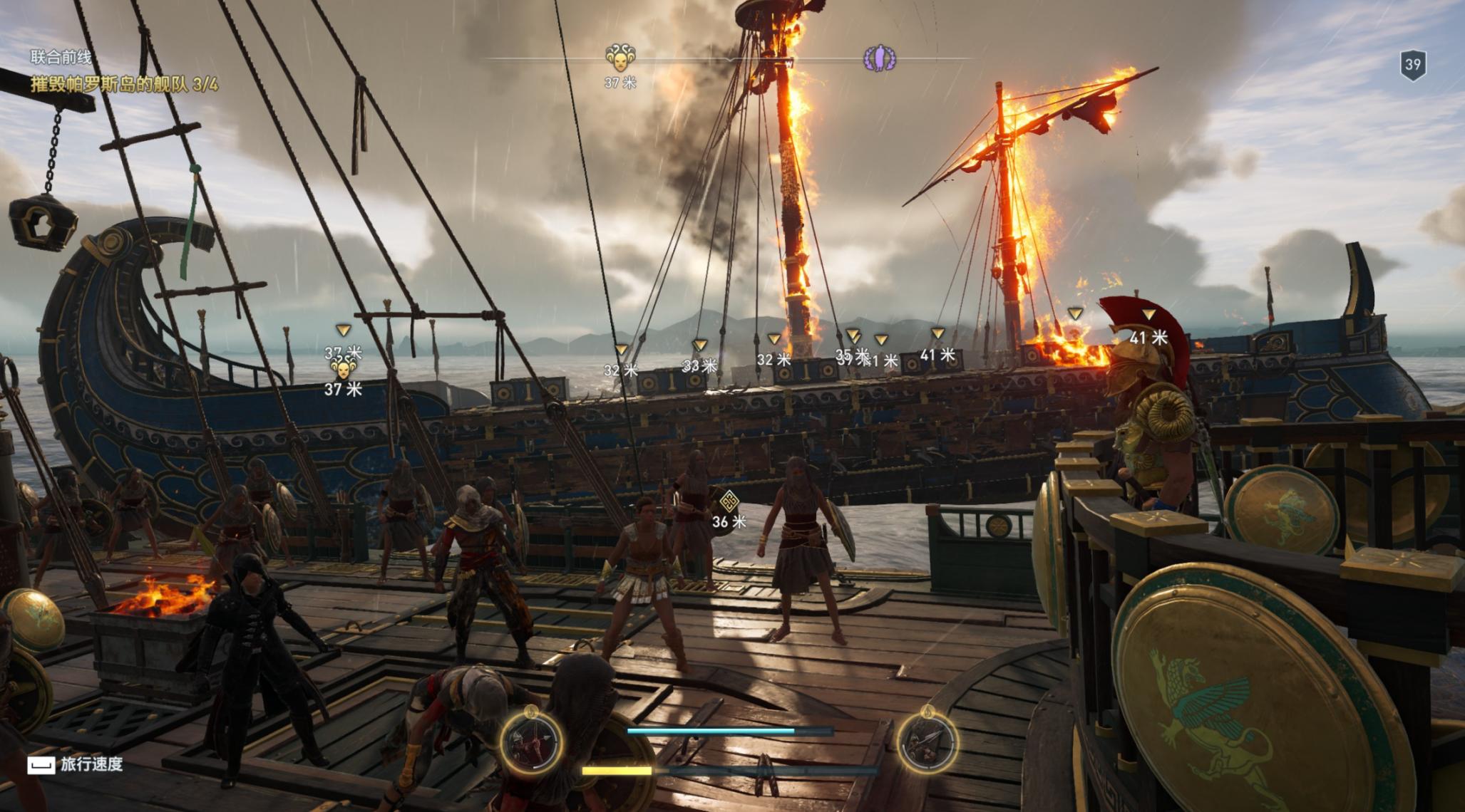 所以,把船弄沉只有一个办法——撞角进攻。这一点相信《刺客信条奥德赛》的玩家都不陌生,赚来的德拉克马很多都用到了升级船体结构上来了。撞角和船身坚固程度是最主要升级的两个方面。奥德赛中的进攻思路很明显,在保证足够距离的前提下,一定不要浪费桨手的体力,直到发起一轮猛攻时,能一鼓作气撞向敌方的龙骨,也是唯一能直接摧毁船体的办法。