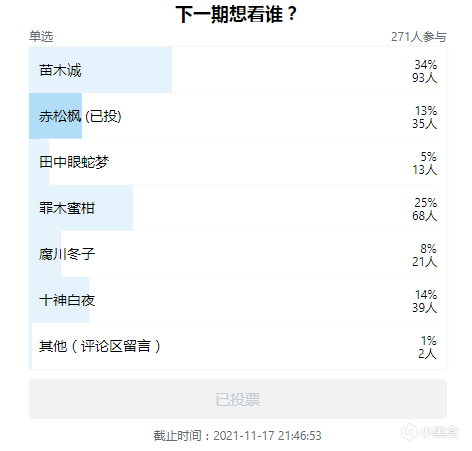 根据上一期的投票结果,恭喜超高校级的保健委员罪木蜜柑成为本期的主角!