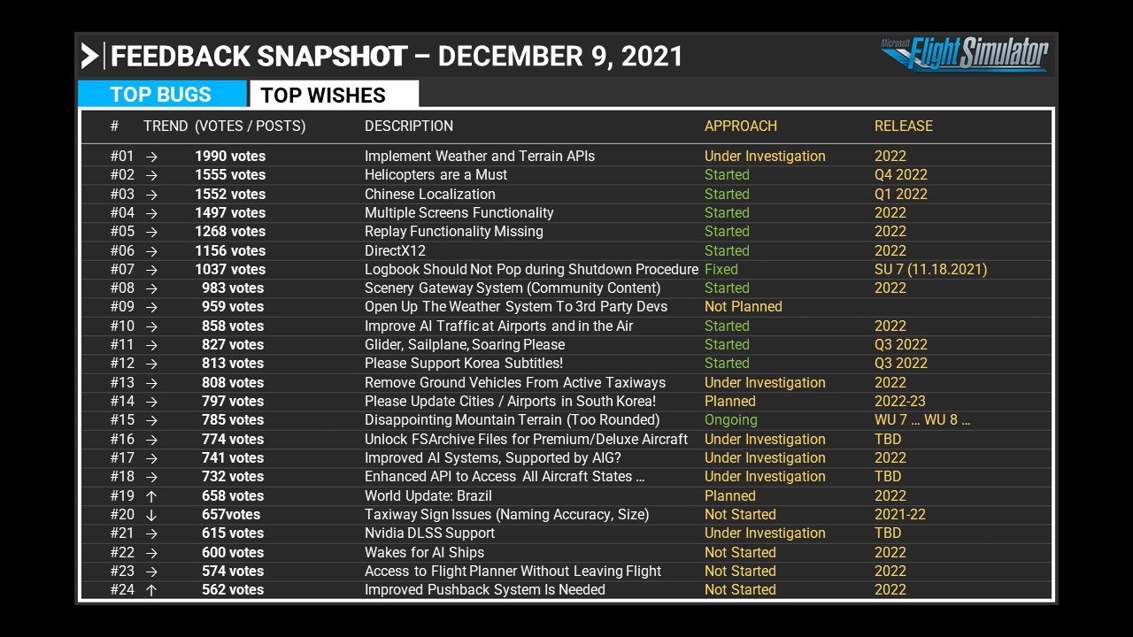 图标中还写到,《微软飞行模拟》还计划加入DX12,Replay,多屏,直升机(Q4),滑翔机和翱翔机,韩语字幕。而英伟达的DLSS功能目前属于“正在调查是否加入”阶段。