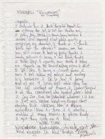 2pac生前的笔记
