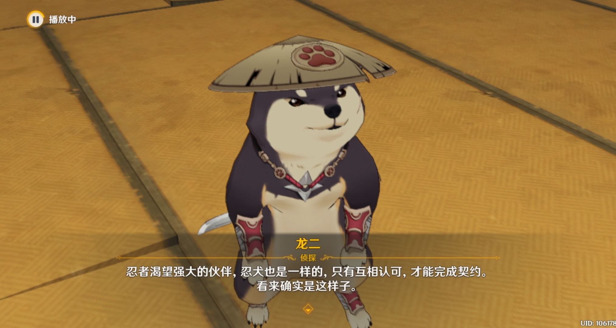 在2.3版本的最后更新了个狗含剑的活动任务,这个任务看着有点莫名其妙,却又似大有深意,玩家在完成四个活动步骤狗,可获得忍犬影狼丸,可放置尘歌谷内与之击剑