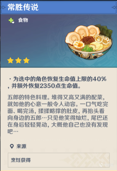 使用五郎烹饪兽骨拉面可以有概率获得常胜传说哦