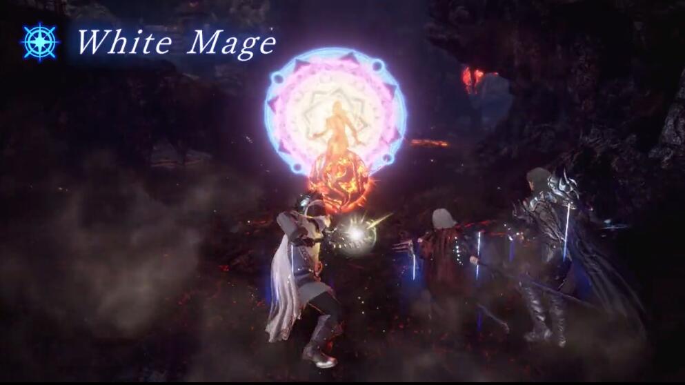 从视频中我们可以看到展示了《最终幻想:起源》中的四种职业,分别是赤魔、武士、白魔与龙骑。与《最终幻想14》中的职业不同,我们可以看到在摆脱了MMO的舒服后,这些职业的战斗都变得行云流水起来,特别是赤魔的战斗方式异常华丽,而且这四个职业似乎是游戏中相对比较高等级的职业。