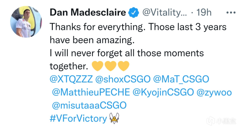 尽管离队的名单内不包括apEX,但他也流露出自己对自从TITAN时期至今的老队员shox以及巨人Kyojin和教练XTQZZZ的不舍以及感谢。据之前的传闻,法国残局大师shox将在2022年加入Liquid,教练XTQZZZ将加入G2担任教练。而来自a队的dupreeh,Magisk以及教练zonic将代替他们三者,让我们祝福2022年的Vitality能够走的更远。