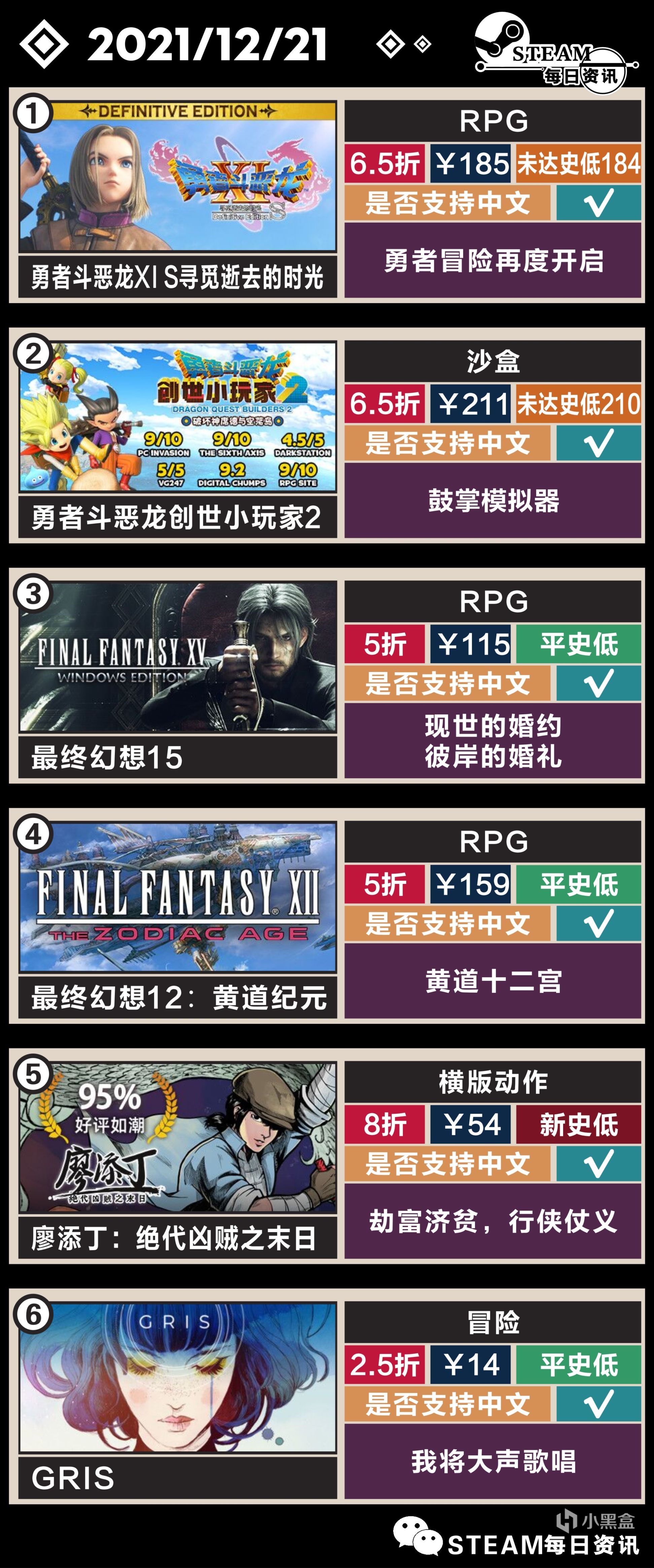 勇者冒险再度开启 - 勇者斗恶龙XI S寻觅逝去的时光,RPG,支持简体中文,6.5折,售价185,未达史低184(首次/最近史低时间21.5.26,近7个月均为6.5折/仅3次),性价比还可以,促销截止12.23凌晨2点。