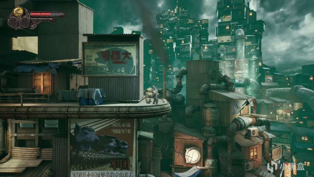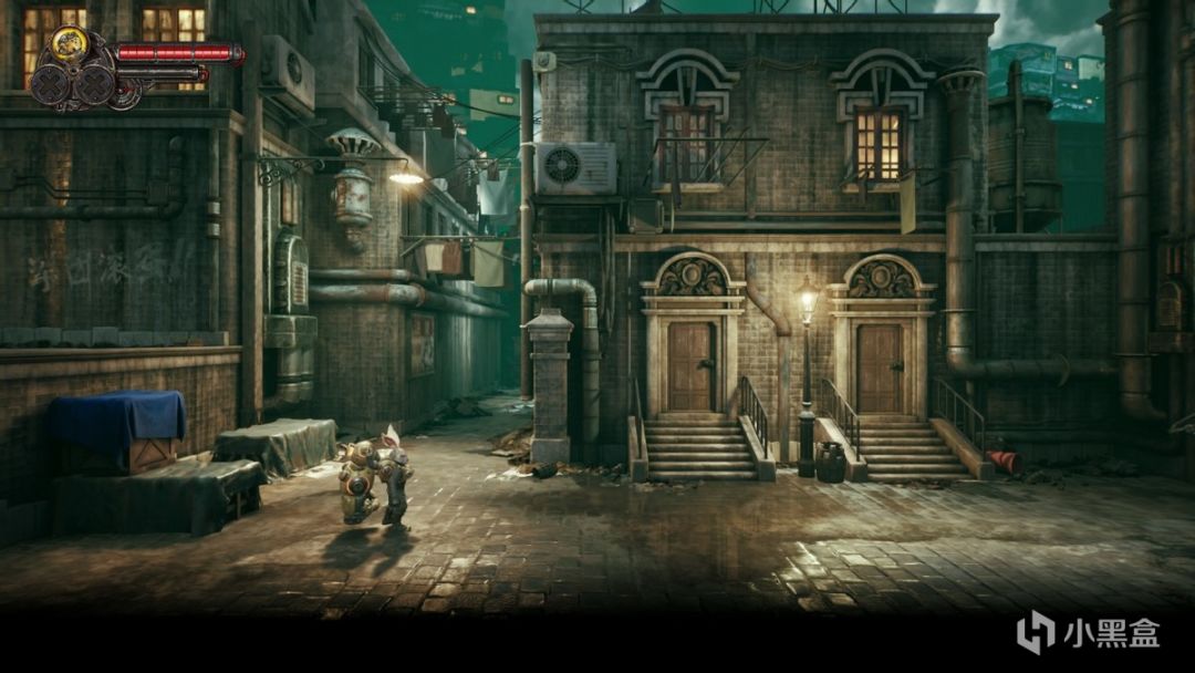 从《暗影火炬城》的CG跨越到实机游戏画面,这之间并不存在着什么沟壑,事实上惊艳感被很好的延续了下来。在这个高压背景下的蒸汽朋克世界里,阴郁色调自然是主旋律,那么怎么表现主题的同时不让玩家感到太压抑,就成了不得不解决的课题了。对此,制作组给出了很好的答案,他们选择在构图设计、光影效果和整体细节上全面加强,最终为我们呈现了迷人的视觉体验。