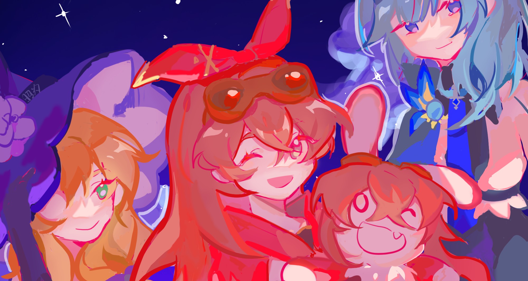 【原神】板绘,安柏丽莎优菈贴贴,附带过程