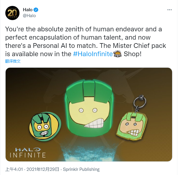 “土官长”以一种全新的、滑稽的方式描绘了这位受人欢迎的英雄。不过,就像《光环:无限》之前推出的装饰品捆绑包一样,玩家们也批评这件新的“Mister Chief”捆绑包定价过高。