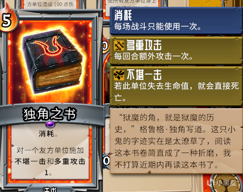 格鲁格还书写了《地狱之角》,这本书讨论了狱魔的生长周期,以及他们的角是如何生长的,它在游戏中的卡面叫做独角之书。
