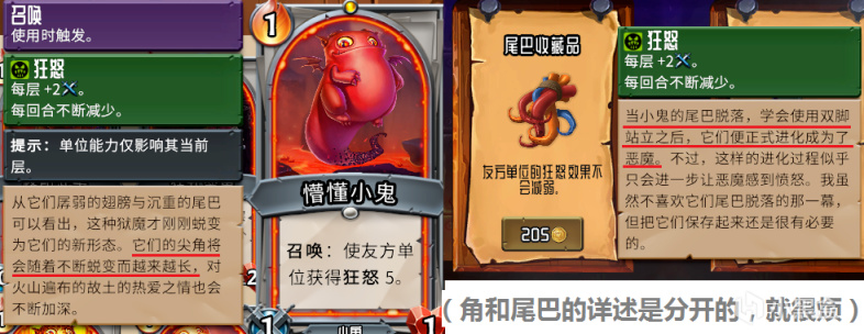 要想成长为一只成熟的狱魔,小鬼要经历好几次蜕皮,在这个过程中,他们的角会慢慢长出来,而尾巴会脱落。这尾巴并不是退化,而是有一个真真切切地脱落的过程,根据神器“尾巴收藏品”的描述,这个过程会让狱魔非常愤怒,显然不是什么赏心悦目的场景。
