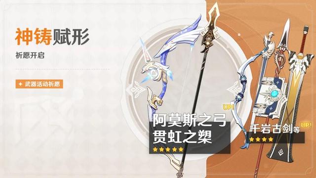 简介:钟离原装配色的贯虹之槊再次出场了,另一把则是阿莫斯(从开服到现在还没歪出来过),也算是很不错的一个卡池了,4星武器方面则是千岩古剑,匣里灭辰等经典武器。