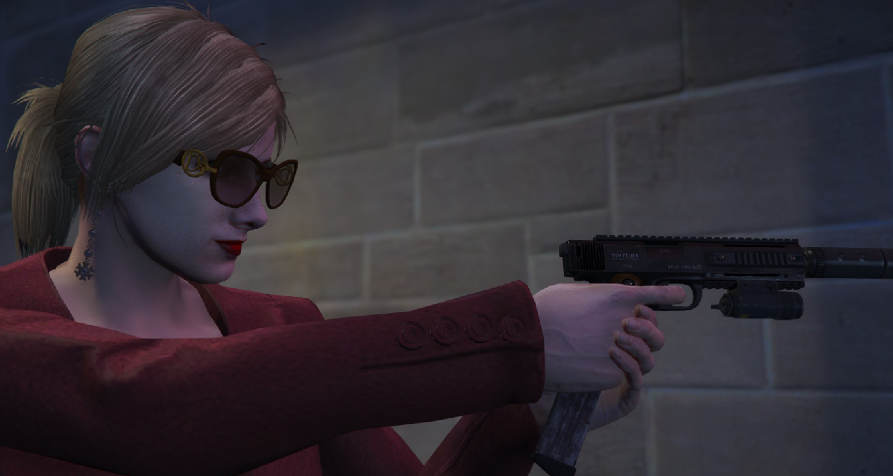 普莱儿从副驾驶的手套箱里掏出了一支MK.2重型左轮手枪. 这支枪是她为破坏载具特意定制的,装备了穿甲子弹,只要有一颗子弹擦中目标载具的发动机,那载具里的人可就要过很难受的一天了.