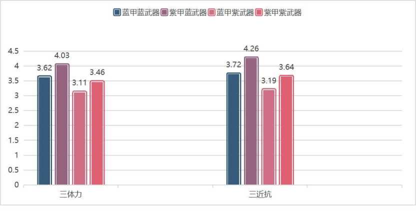 可以发现从原来的体力>近抗,变成了近抗>体力,虽然差距不大,但是在游戏后期,许多敌人装备金甲或者金武器的情况下,近抗的收益将会进一步加大。